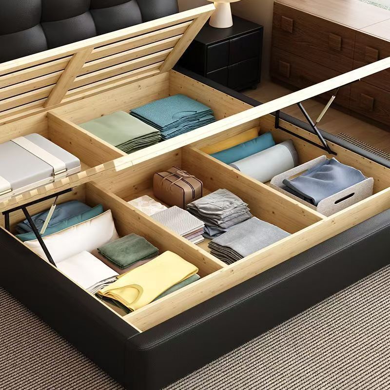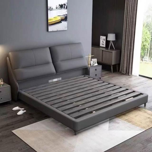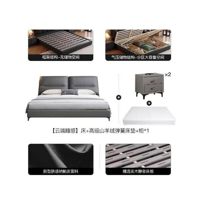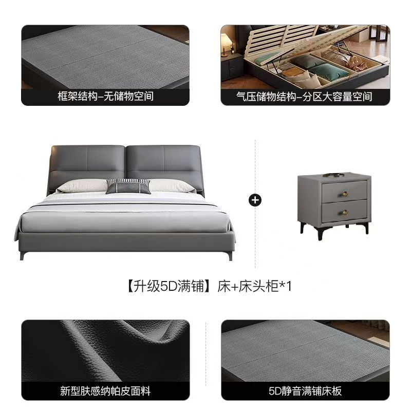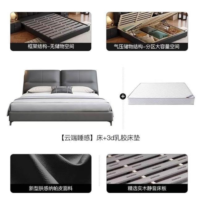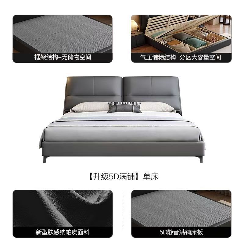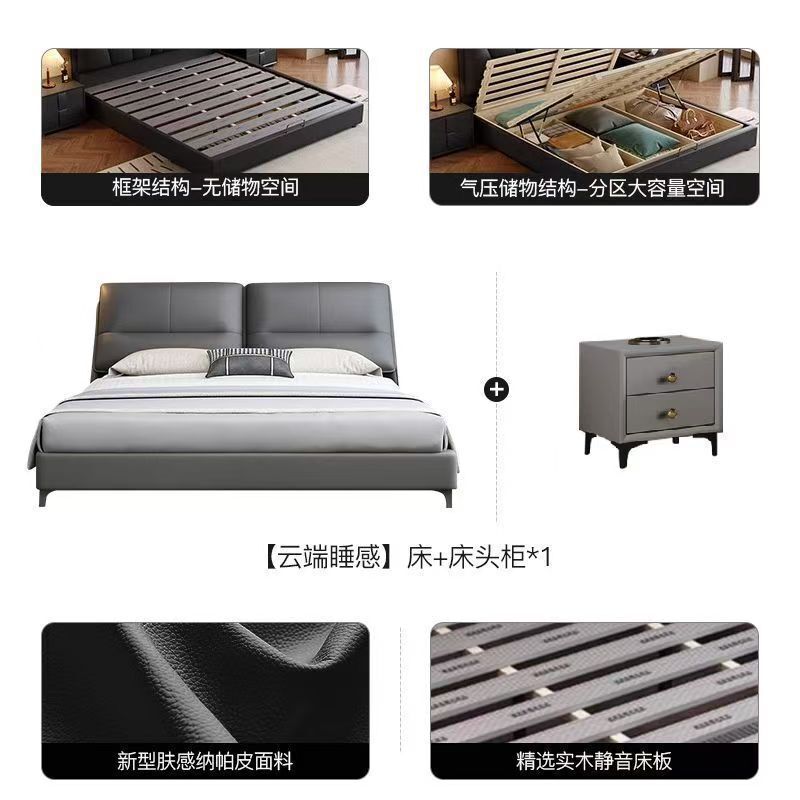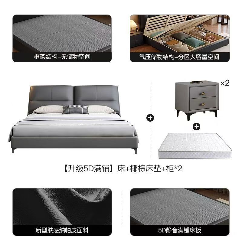 現代簡約輕奢真皮床主臥室小戶型1.5米雙人新款高端儲物皮藝大床