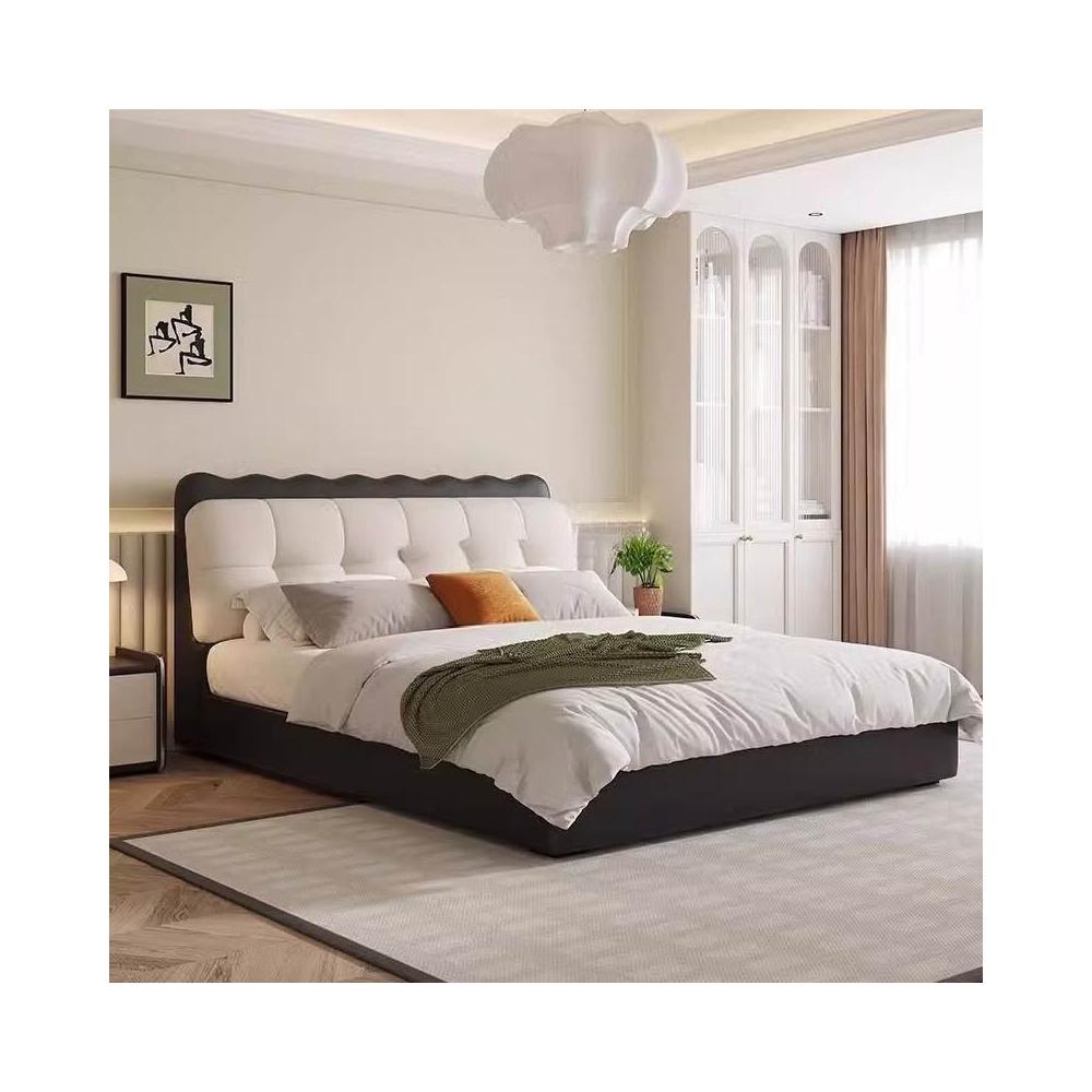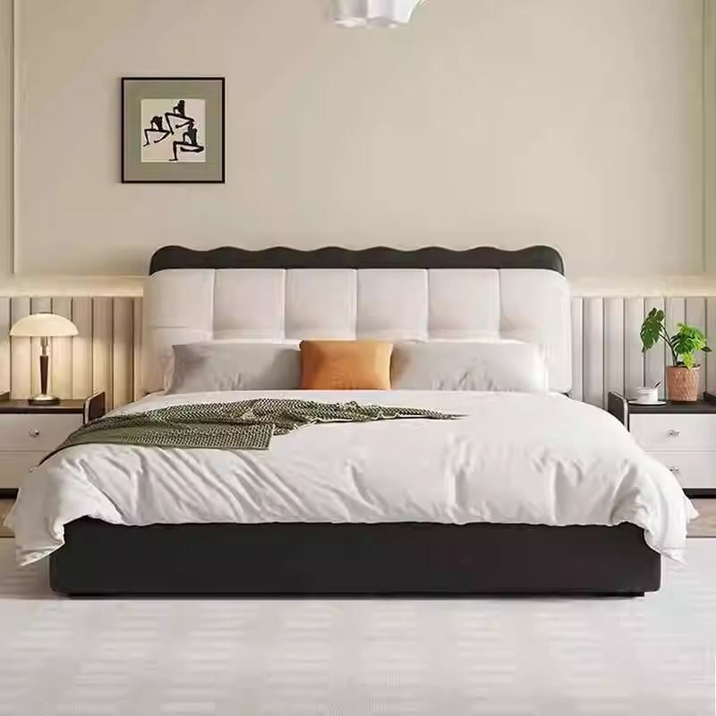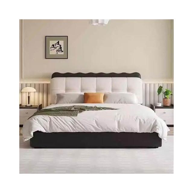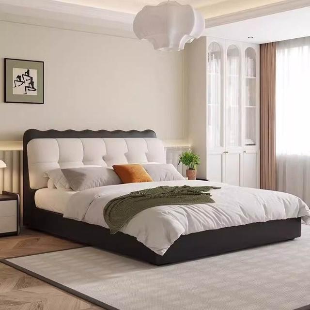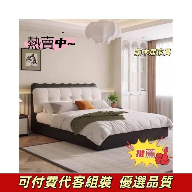 現代簡約泡芙床奶油風小戶型布藝軟包雙人床現代簡約雙人儲物大床