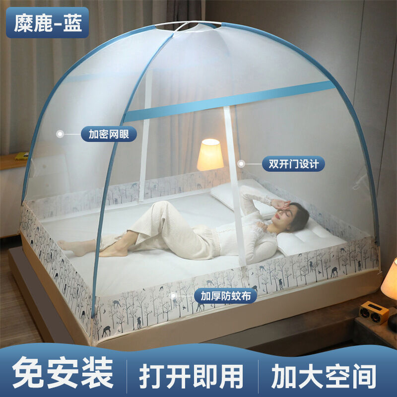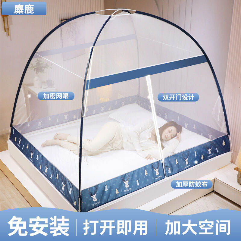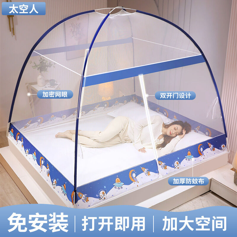 蒙古包蚊帳1米8床家用免安裝雙開門紋帳批發1米5床折疊文帳