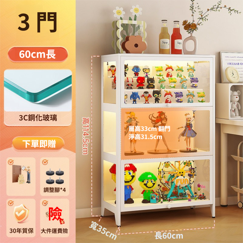 可開發票鋼製手辦櫃展示櫃防爆玻璃門防塵儲物玻璃儲物痛櫃盲盒谷子置物櫃
