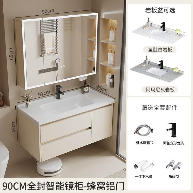 浴室櫃陶瓷一體盆蜂窩鋁抽屜浴室櫃衛生間洗手洗臉盆櫃組合洗漱臺
