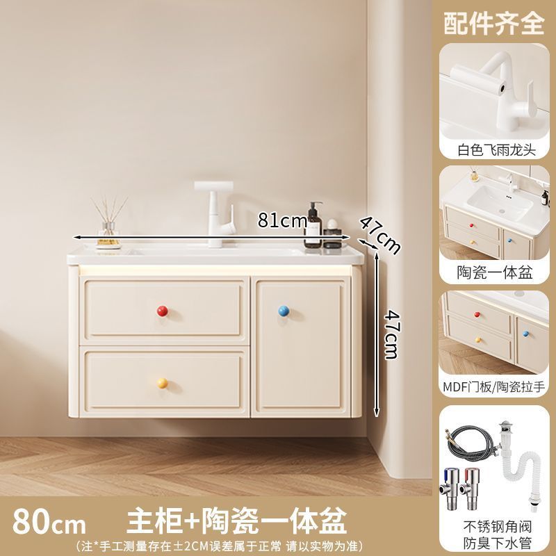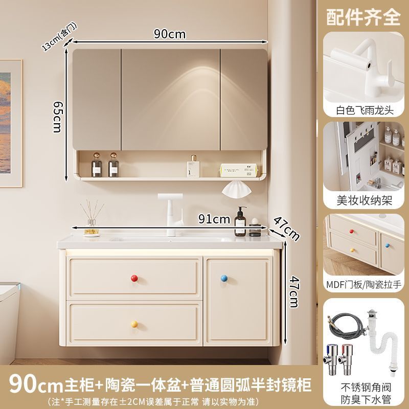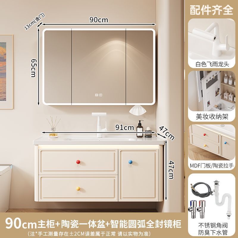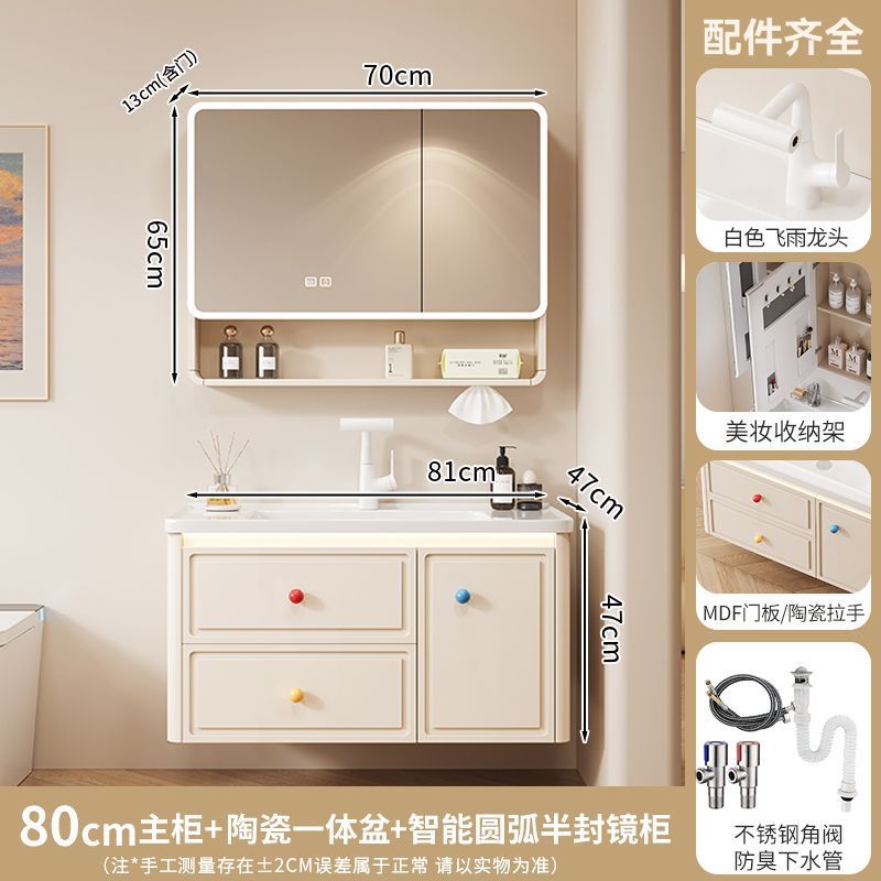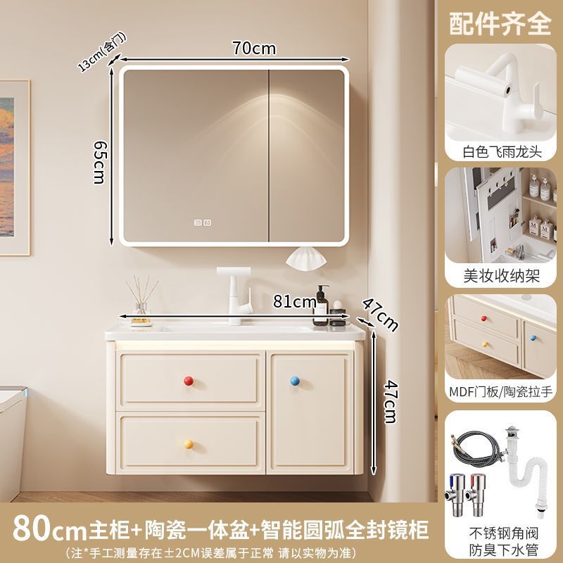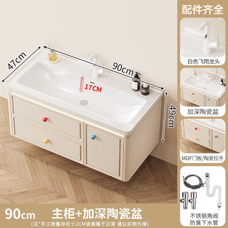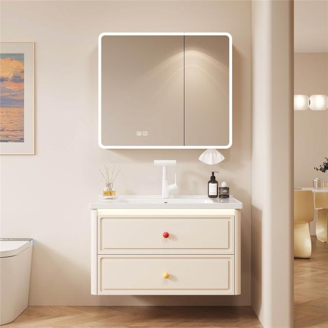 法式多巴胺風格蜂窩鋁浴室櫃陶瓷一體盆組合帶感應燈洗手臺衛浴櫃