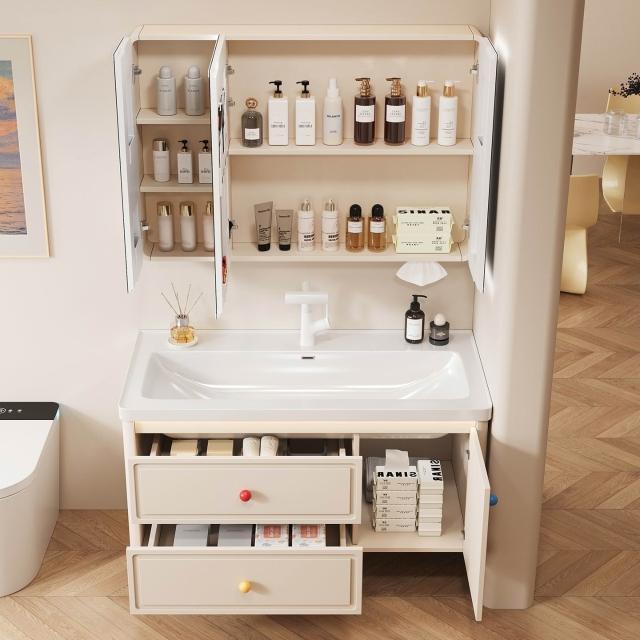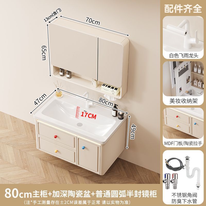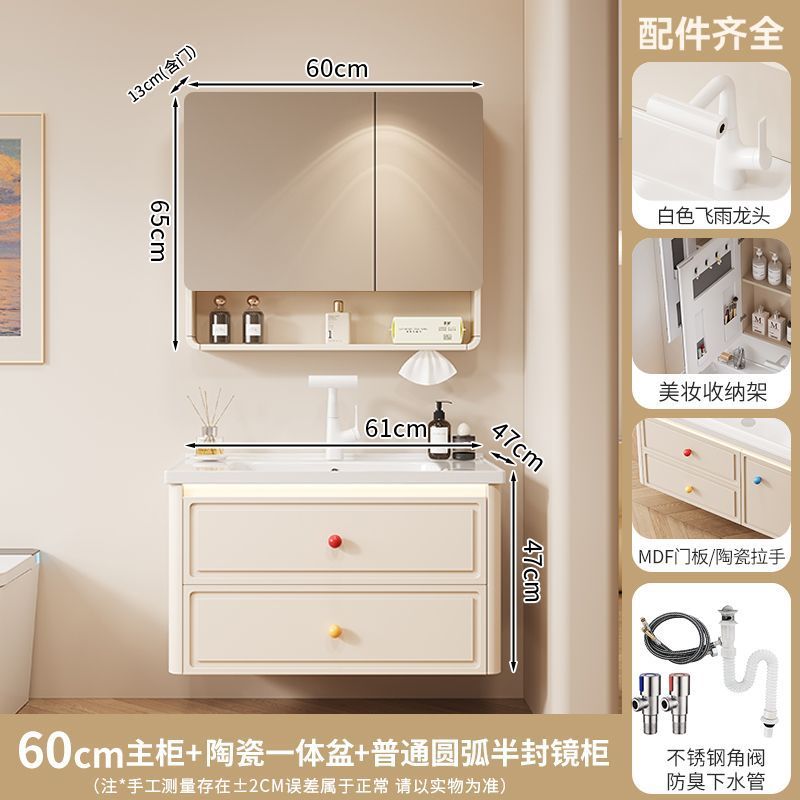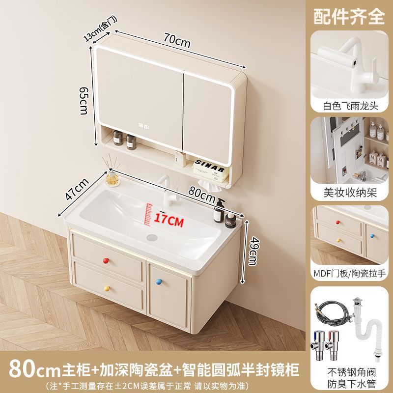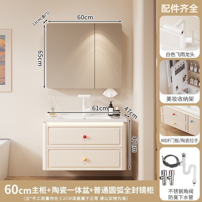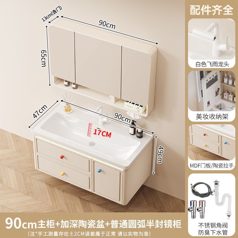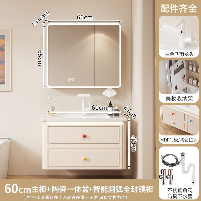 法式多巴胺風格蜂窩鋁浴室櫃陶瓷一體盆組合帶感應燈洗手臺衛浴櫃