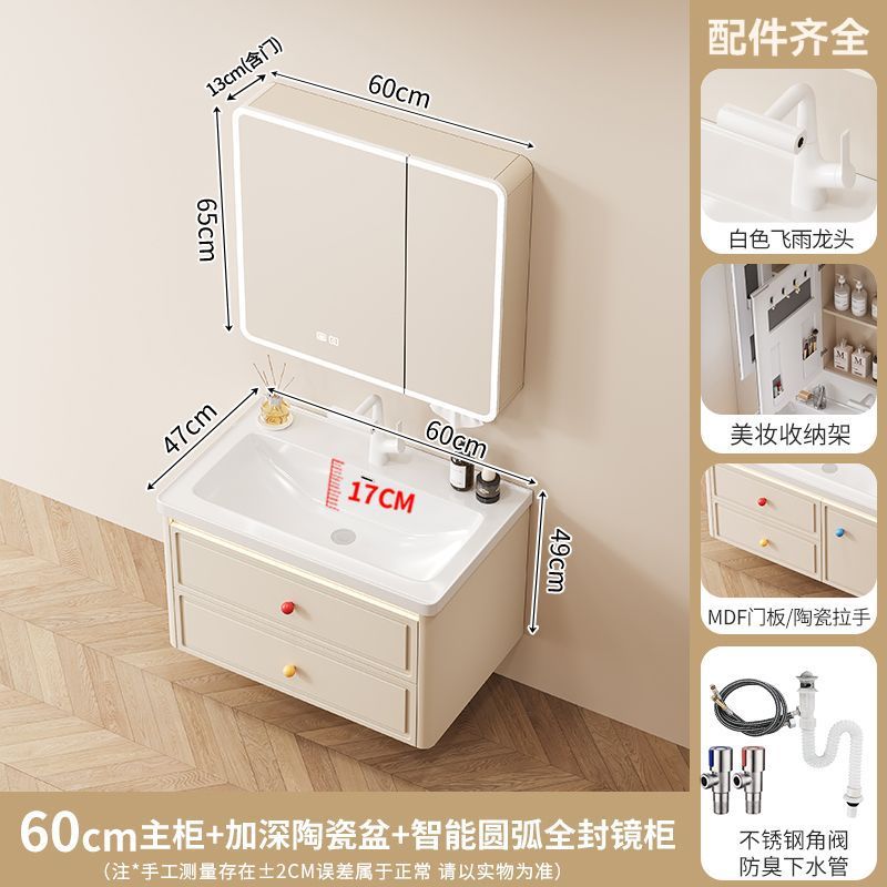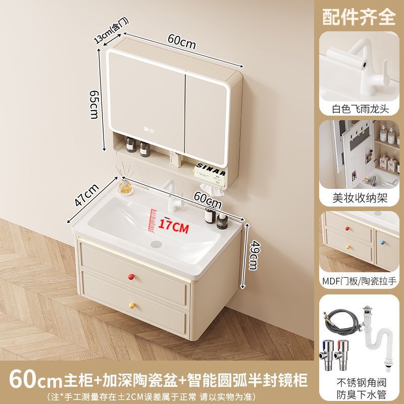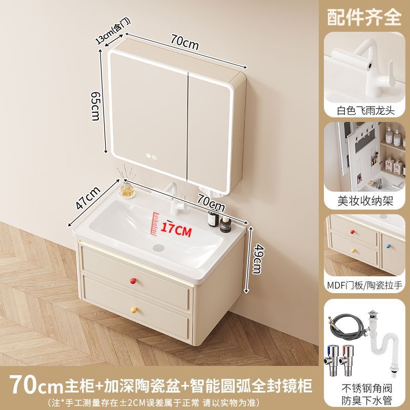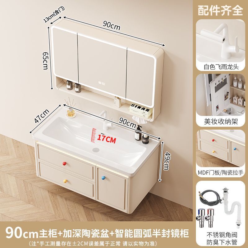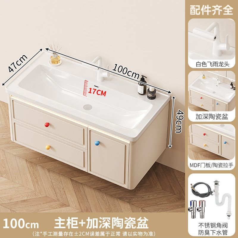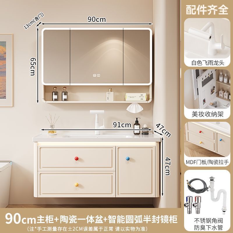 法式多巴胺風格蜂窩鋁浴室櫃陶瓷一體盆組合帶感應燈洗手臺衛浴櫃