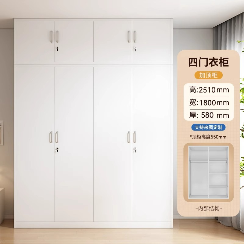 鋼製衣櫃印花櫃家用臥室推拉帶鎖大衣櫃子被褥儲物櫃鐵皮改色衣櫥