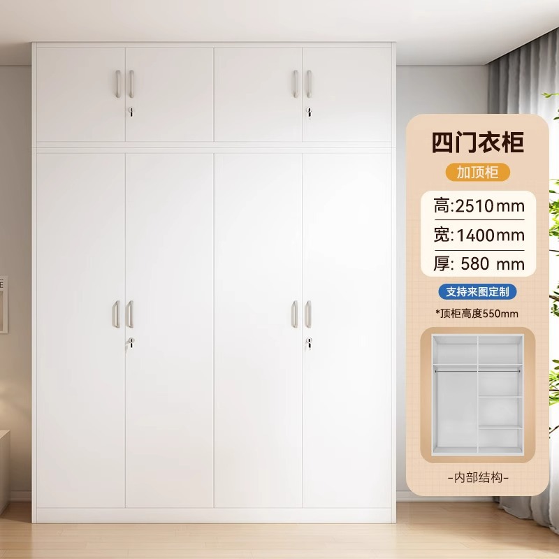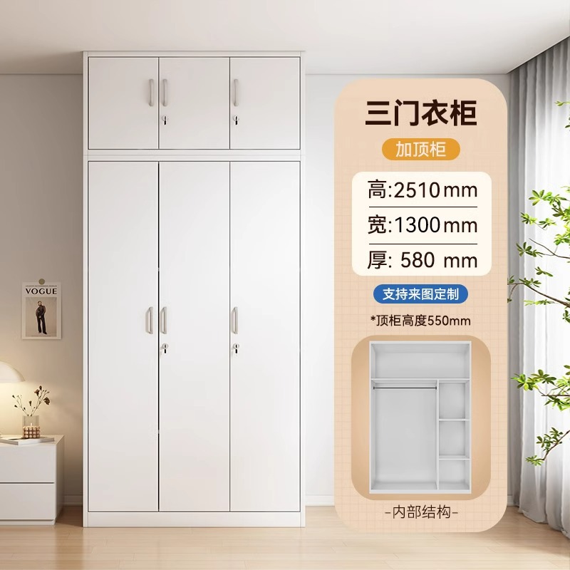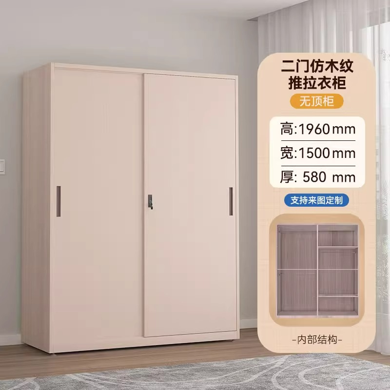 鋼製衣櫃印花櫃家用臥室推拉帶鎖大衣櫃子被褥儲物櫃鐵皮改色衣櫥