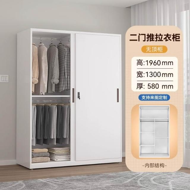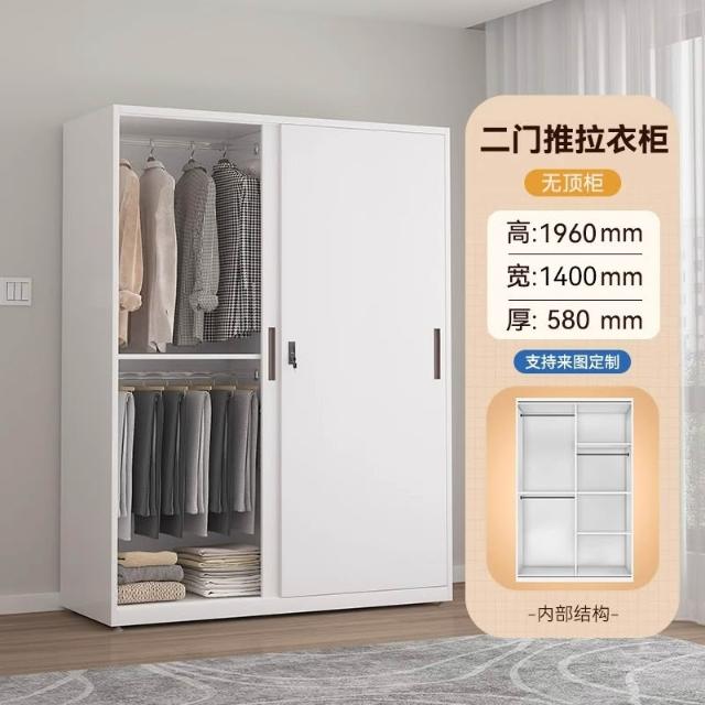 鋼製衣櫃印花櫃家用臥室推拉帶鎖大衣櫃子被褥儲物櫃鐵皮改色衣櫥