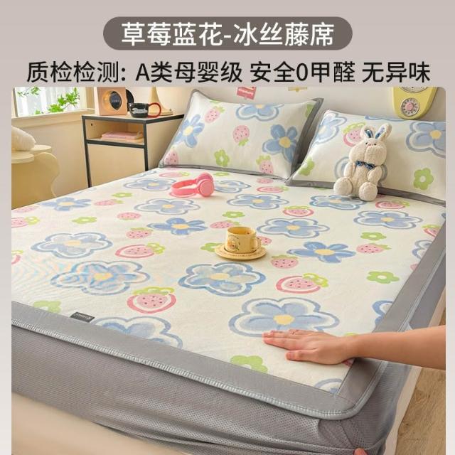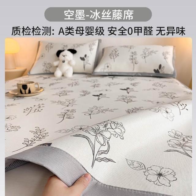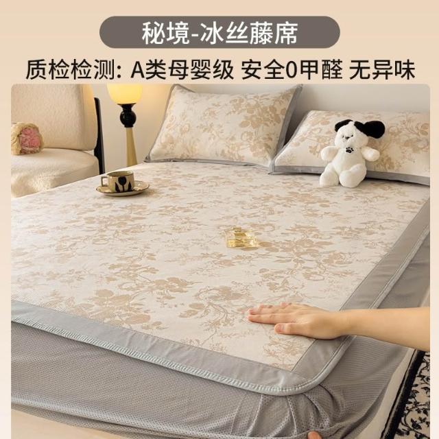 A類冰藤席冰絲涼席床墊三件套夏天2026新款可機洗空調軟席子竹席