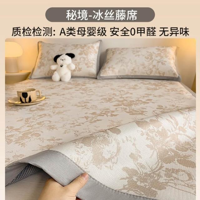 A類冰藤席冰絲涼席床墊三件套夏天2026新款可機洗空調軟席子竹席