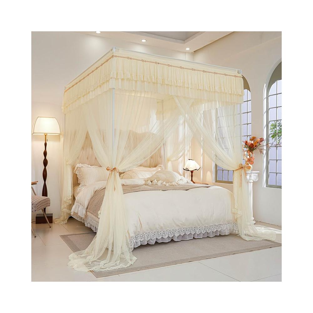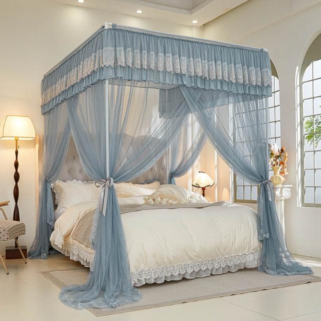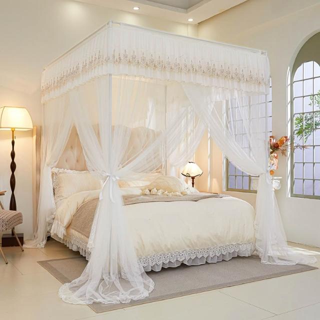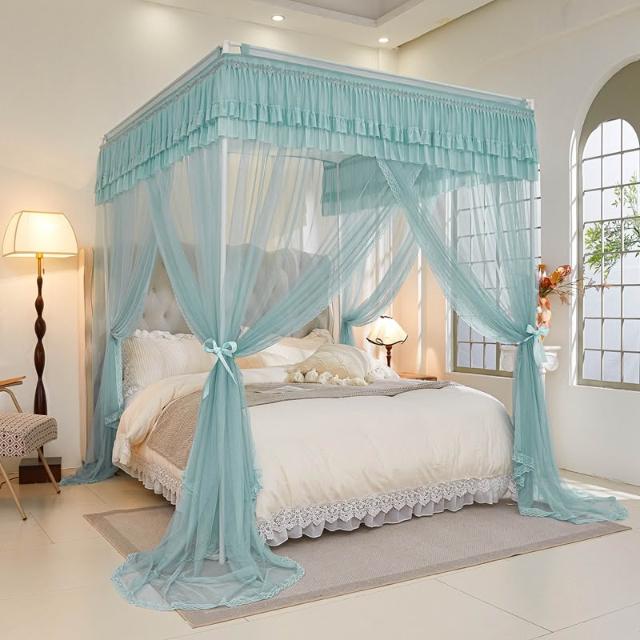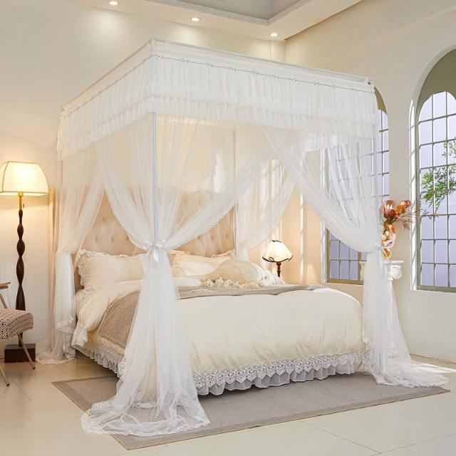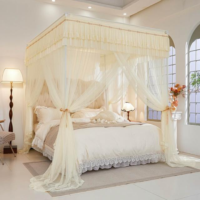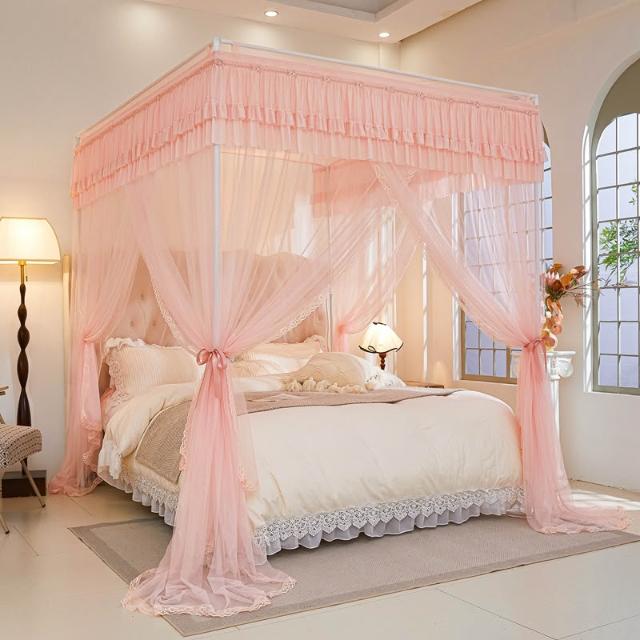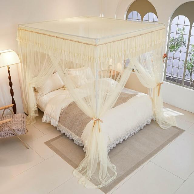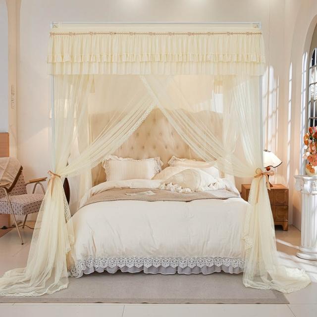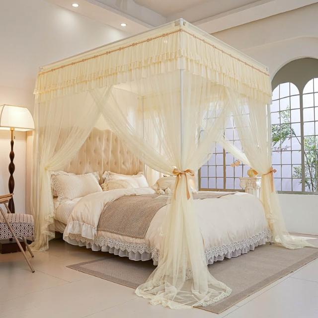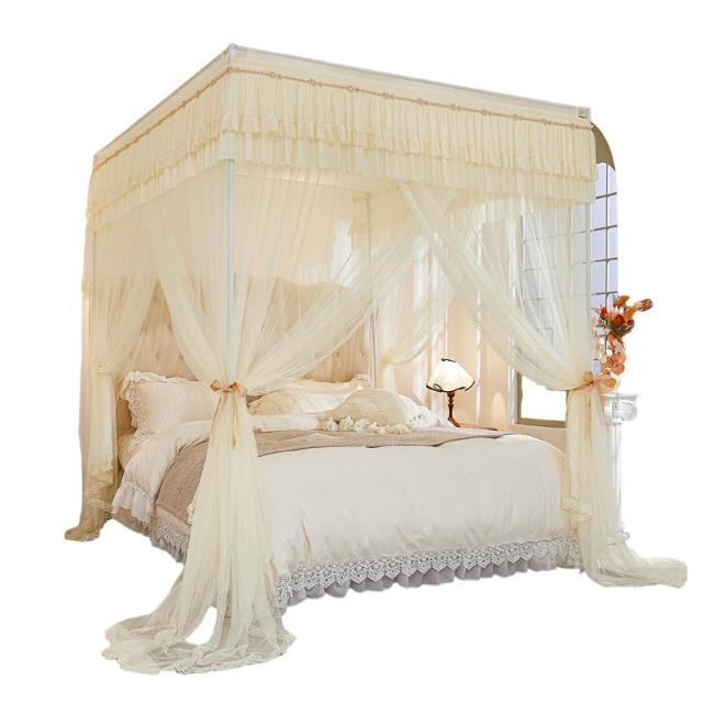 三開門蚊帳帶加粗支架加密加厚1.5米1.2米帳紗落地家用宮廷紋帳子