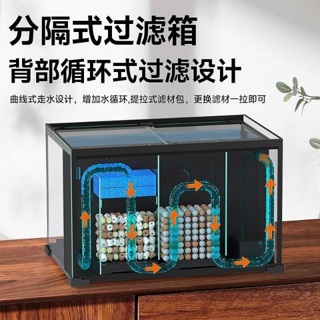 魚缸超白背濾小型客廳生態桌面金魚缸造景缸家用龜缸自循環水草缸