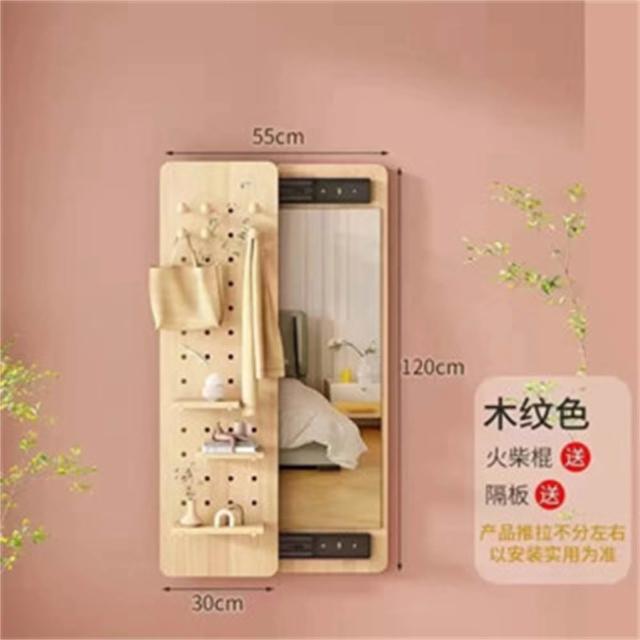 隱形穿衣鏡 洞洞板全身鏡 實木 可關閉隱藏推拉鏡子 折疊 掛牆 全身 穿衣可遮擋隱形壁掛式玄關 試衣鏡