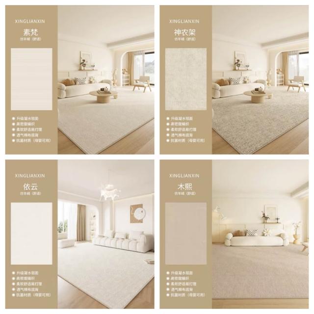 加厚地毯 地墊 仿羊絨地毯24H防水 棉麻底背👍擼貓感地毯 客廳地毯 地毯臥室 素色 地毯客廳 房間 止滑地墊 奶油風