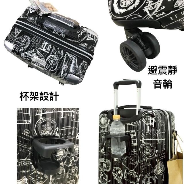 YC Eason特色郵戳 超美鏡面行李箱 避震靜音輪 可加大 杯架 鏡面行李箱 旅行箱 登機箱20吋/24吋/28吋