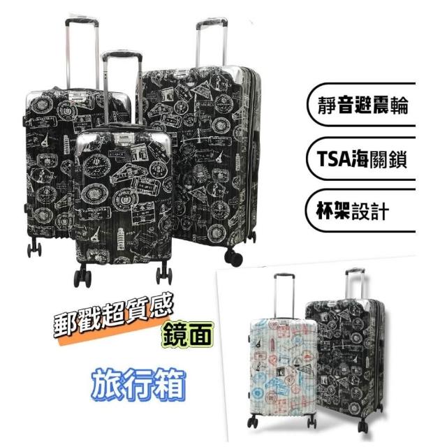 YC Eason特色郵戳 超美鏡面行李箱 避震靜音輪 可加大 杯架 鏡面行李箱 旅行箱 登機箱20吋/24吋/28吋
