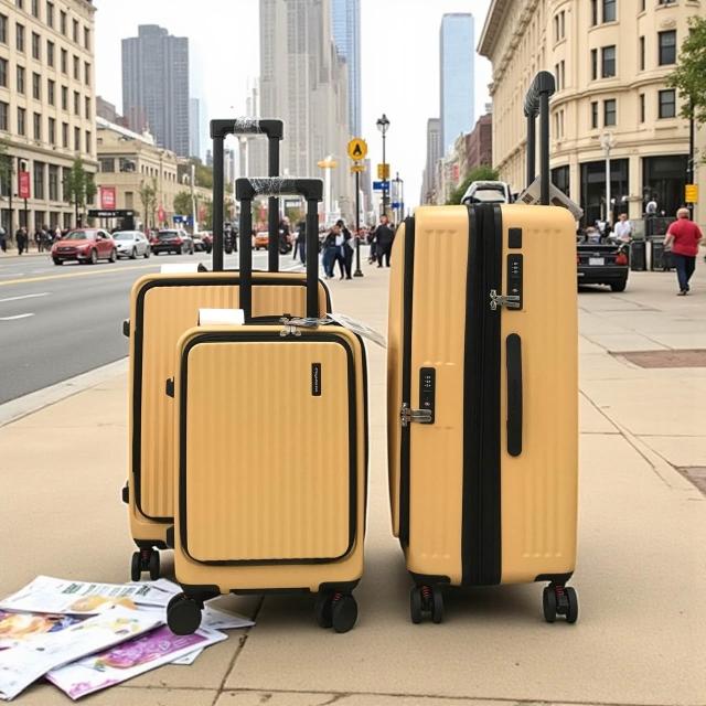 麥拉倫前開PC旅行箱 電子紋防刮 防盜拉鍊 杯架 剎車輪 旅行箱 9比1大容量 行李箱 登機箱
