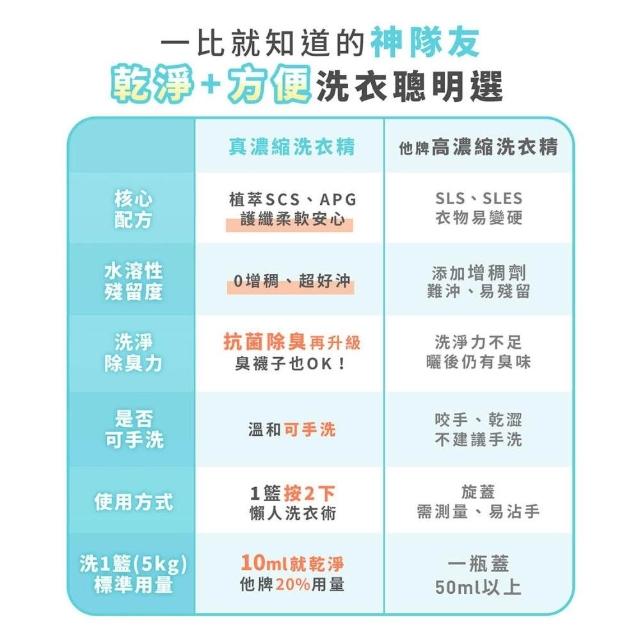 - 超越市售濃縮洗衣精★5倍濃縮量