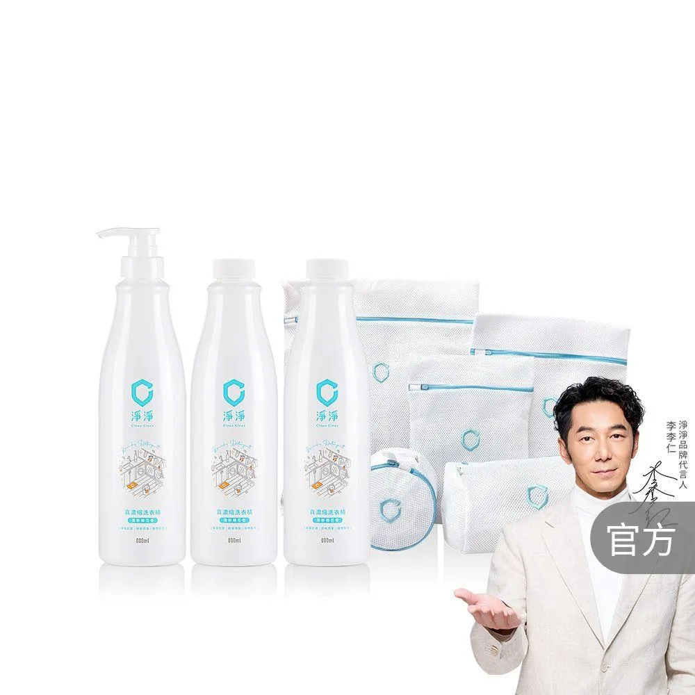淨淨真 濃縮洗衣精800ml 1+1/1+2+洗衣袋/1+1+1 (mo+獨家組合 李李仁推薦;室內晾衣/除臭抗菌/低敏)