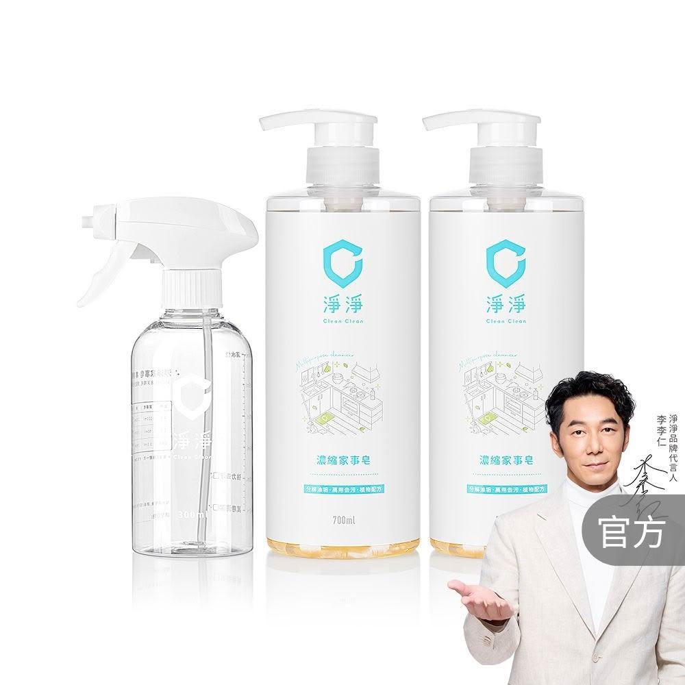 淨淨濃縮家事皂700ml 2入+ 專用噴瓶(李李仁推薦;廚房/氣炸鍋/微波爐/地板/玻璃/居家 清潔 中性清潔劑)