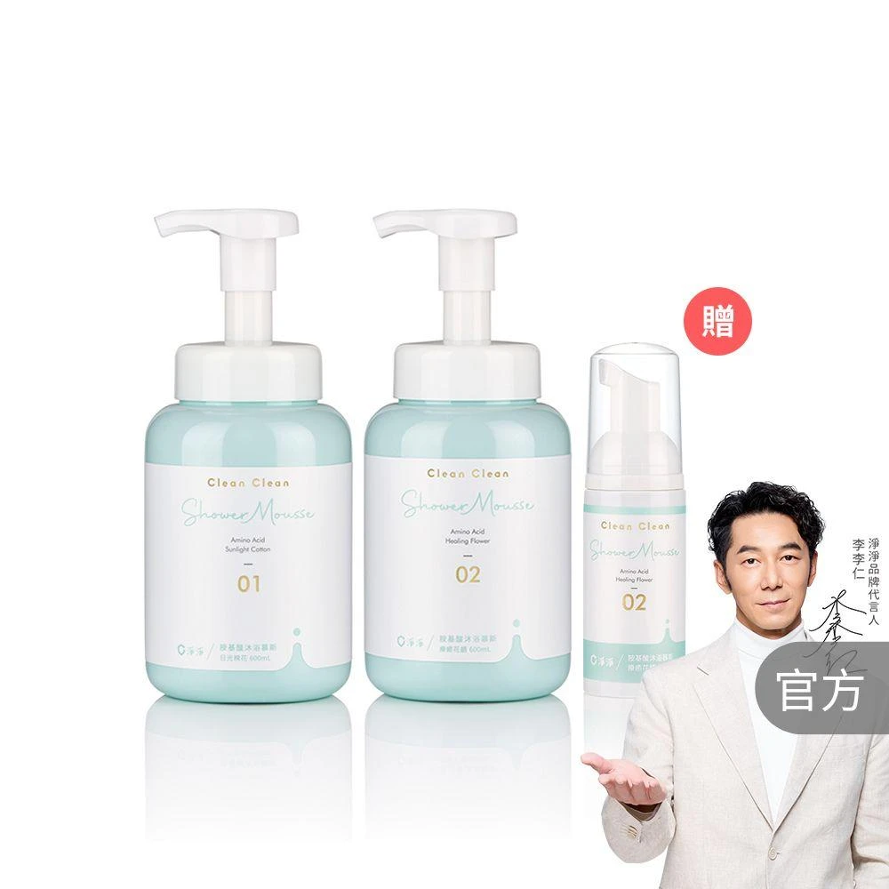淨淨胺基酸沐浴慕斯 沐浴慕斯600ml*2+50ml*1(超值2+1組 李李仁推薦;舒敏/抗菌/B5/全膚質 乾敏肌適用)