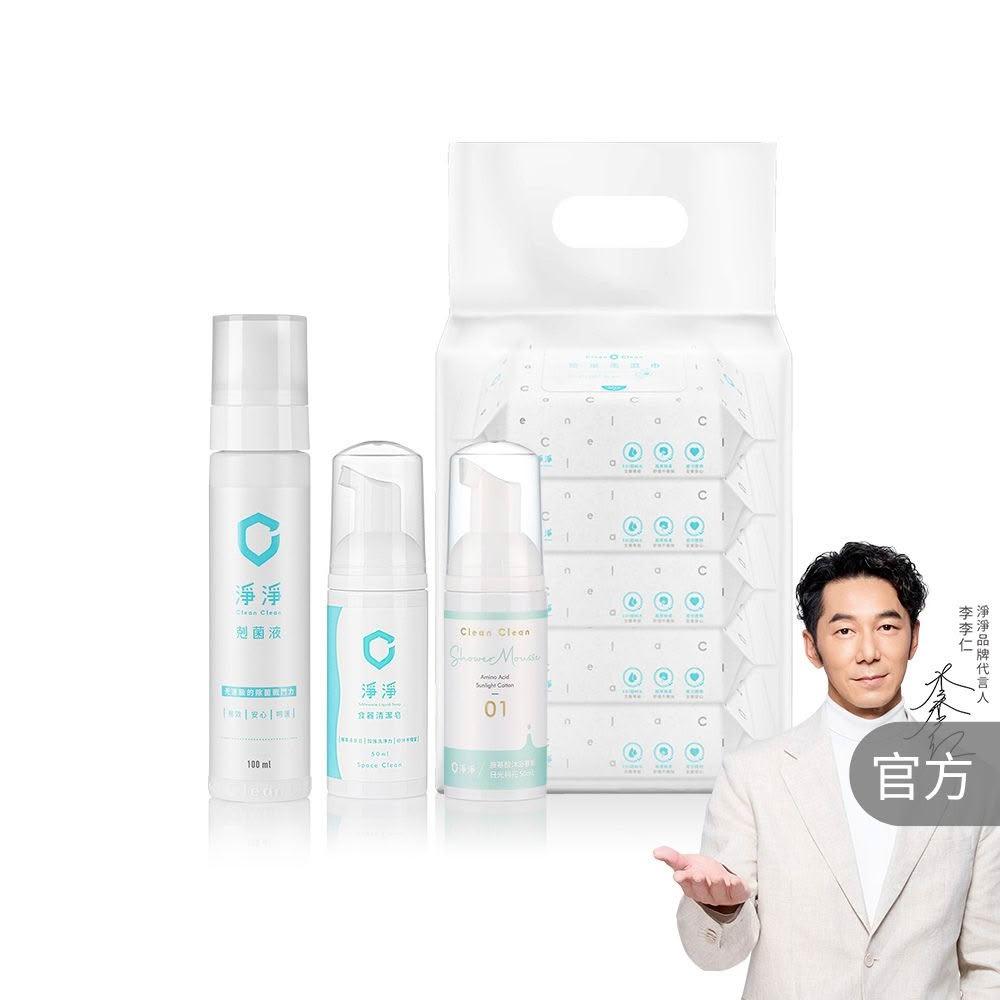 淨淨媽咪外出應援組 食器清潔皂 迷你瓶+沐浴慕斯 迷你瓶+剋菌液 隨身瓶+柔濕巾 15抽x5包/串(李李仁推薦)