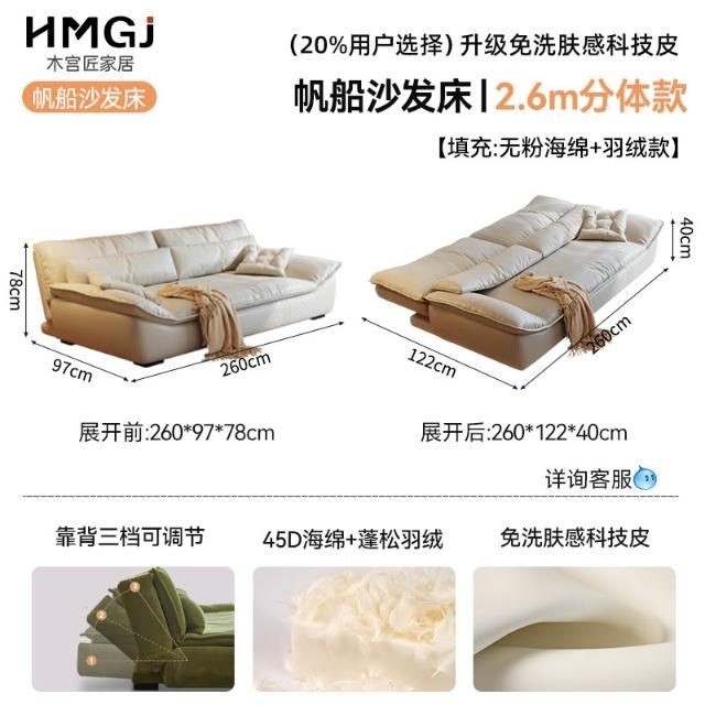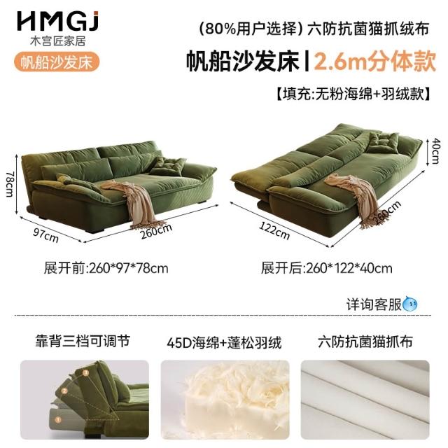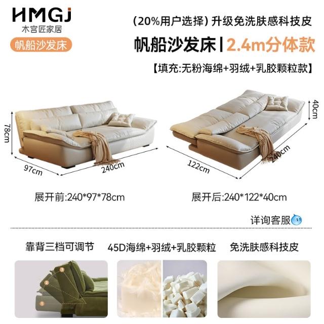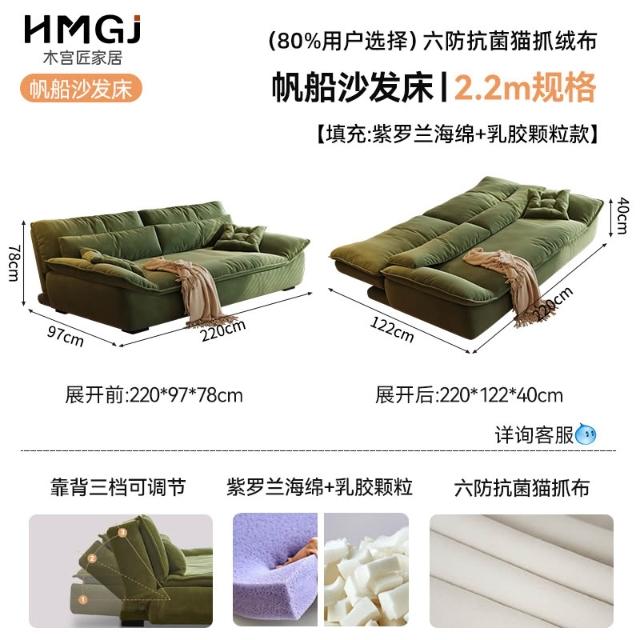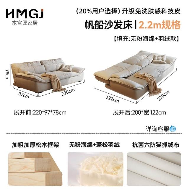木宮匠家居布藝多功能新款帆船沙發床兩用小戶型書房奶油風沙發床