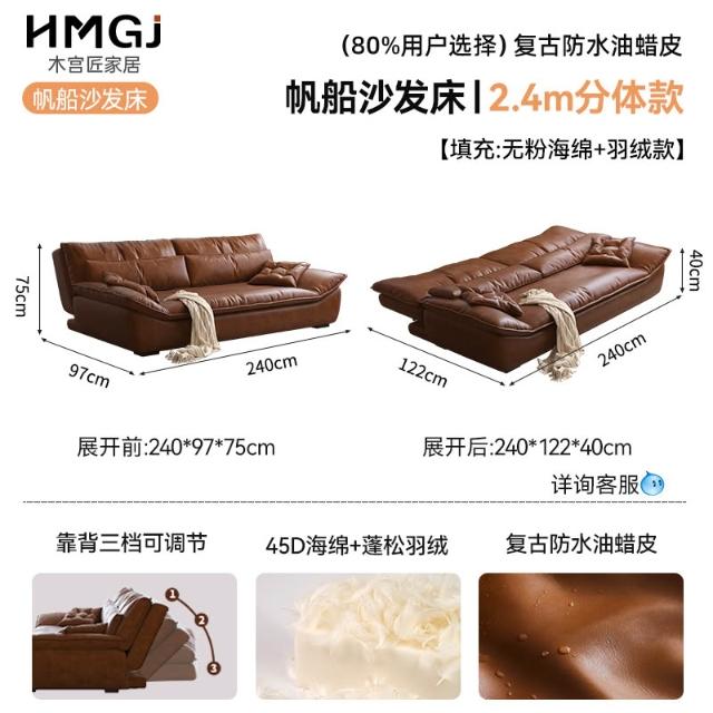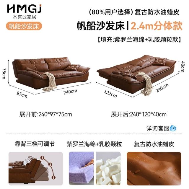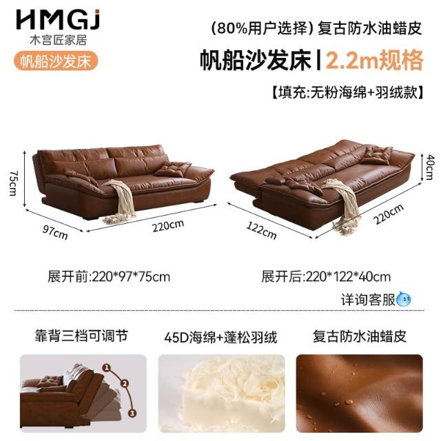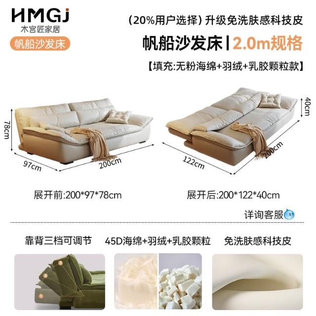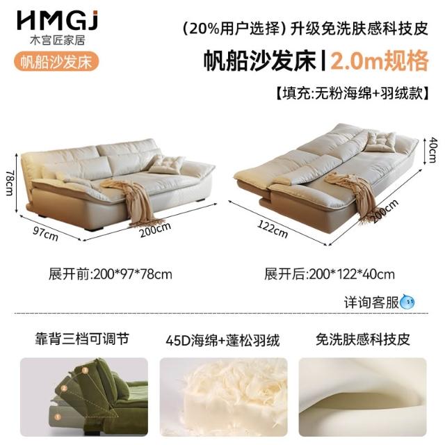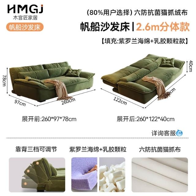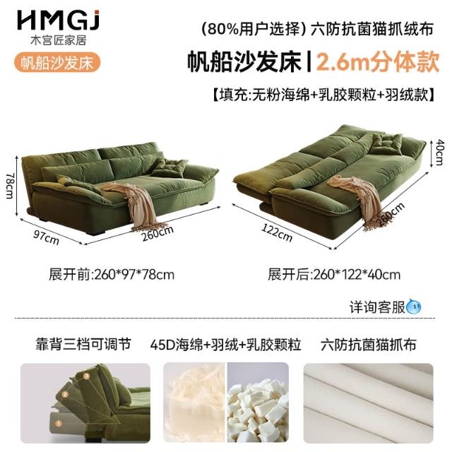 木宮匠家居布藝多功能新款帆船沙發床兩用小戶型書房奶油風沙發床