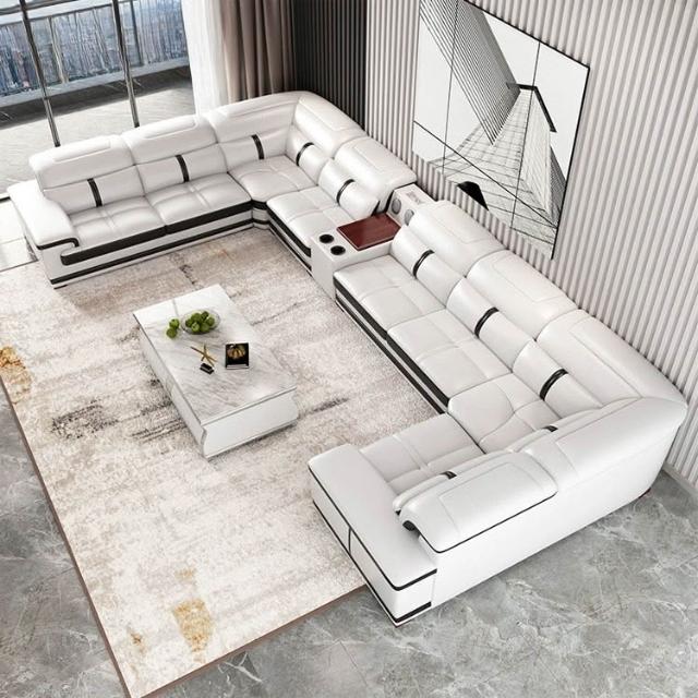 現代U型真皮沙發大戶型客廳轉角組合沙發KTV家庭影院別墅高端沙發