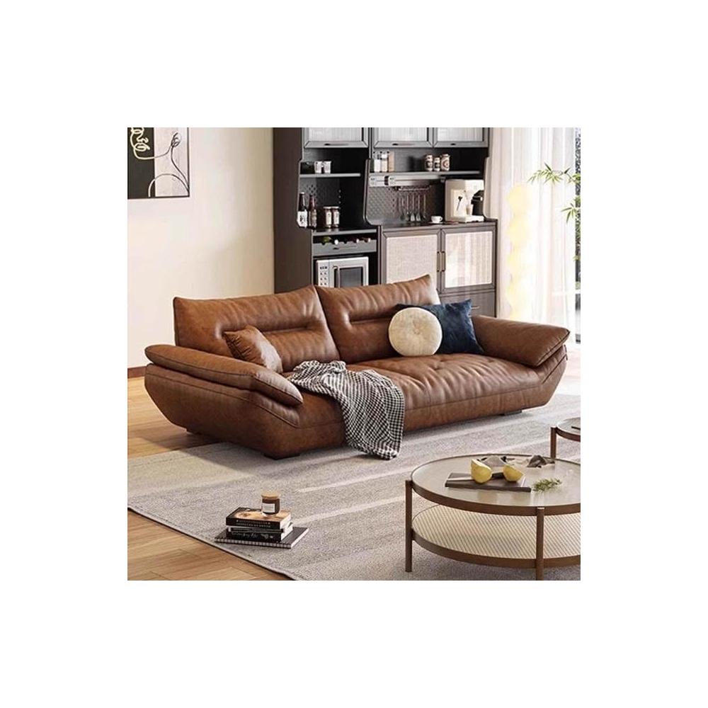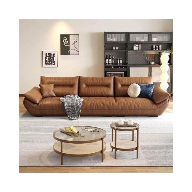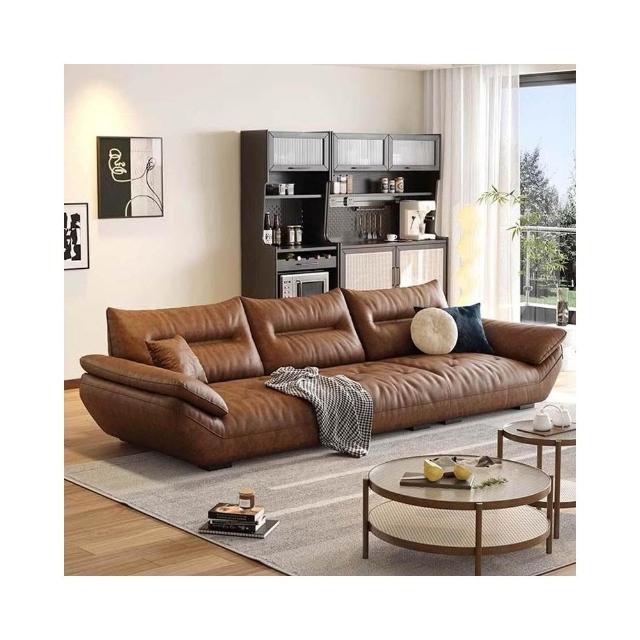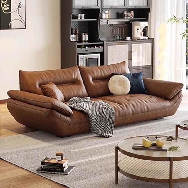 佛山意式頭層牛皮沙發直排復古中古風客廳皮藝啡色帆船真皮沙發