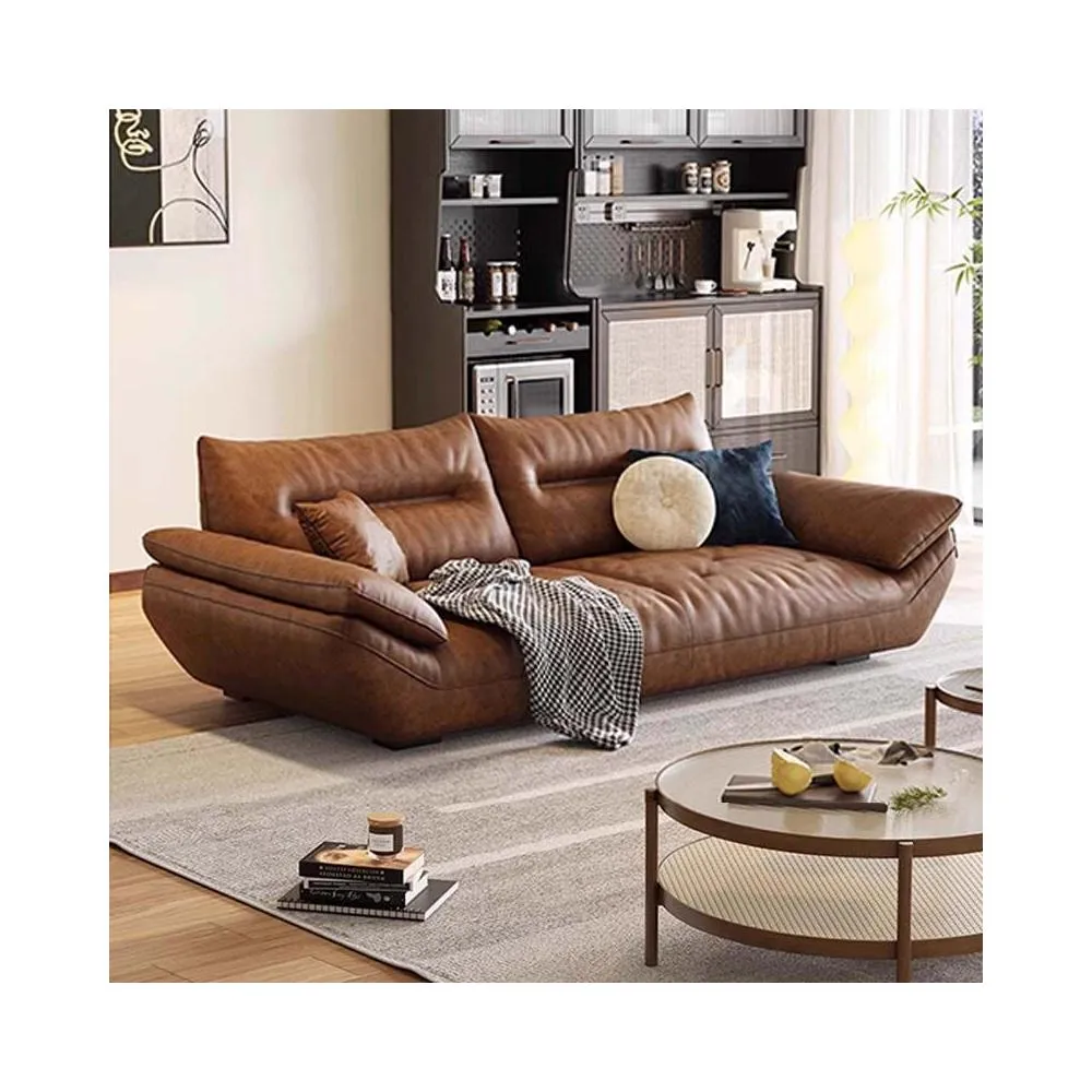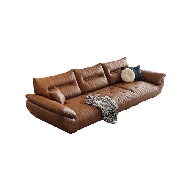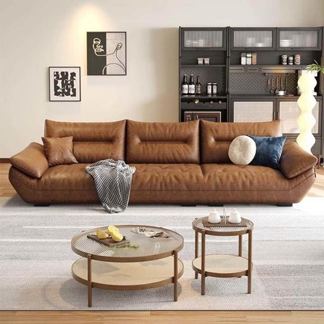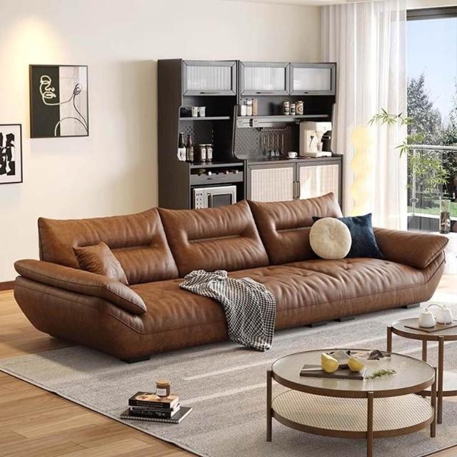 佛山意式頭層牛皮沙發直排復古中古風客廳皮藝啡色帆船真皮沙發