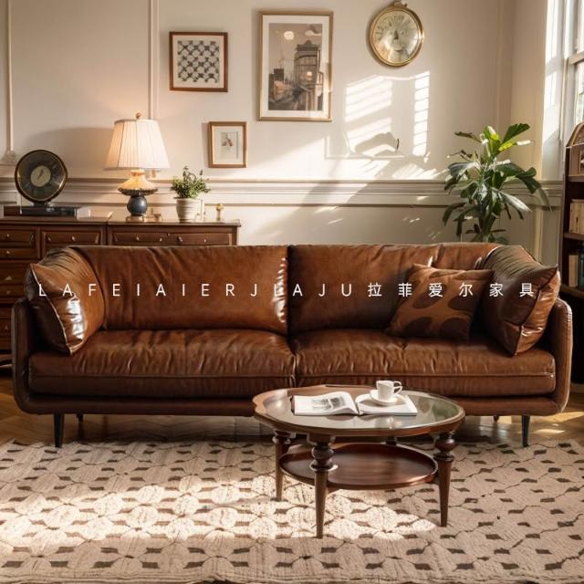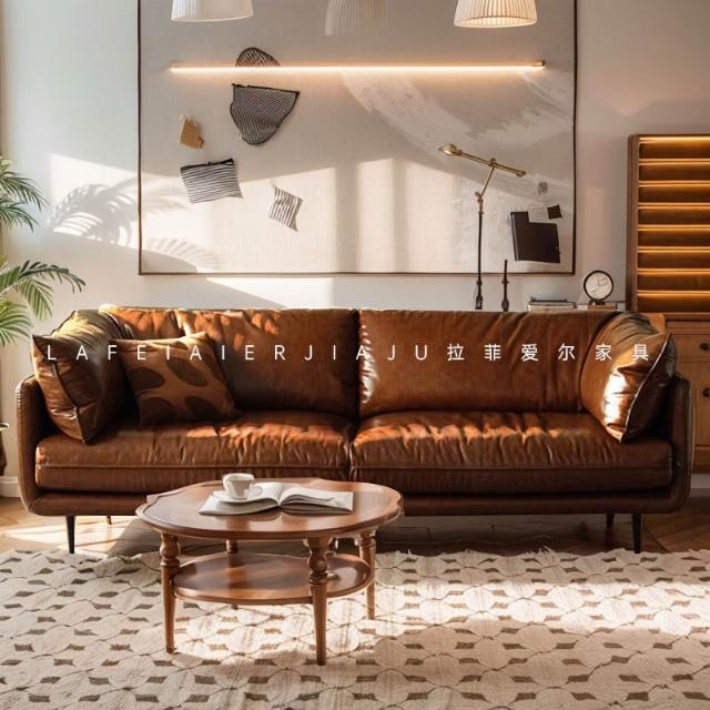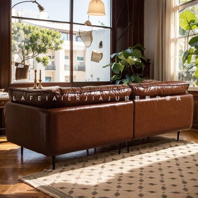 Hug懷抱沙發客廳2025新款中古風羽絨小戶型直排復古油蠟真皮沙發