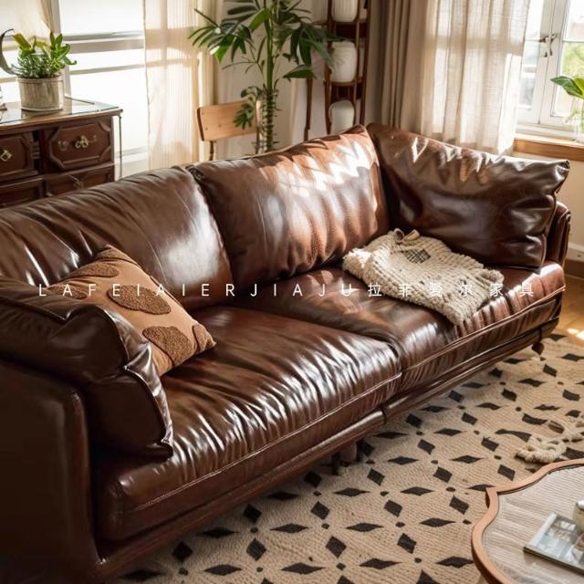 Hug懷抱沙發客廳2025新款中古風羽絨小戶型直排復古油蠟真皮沙發