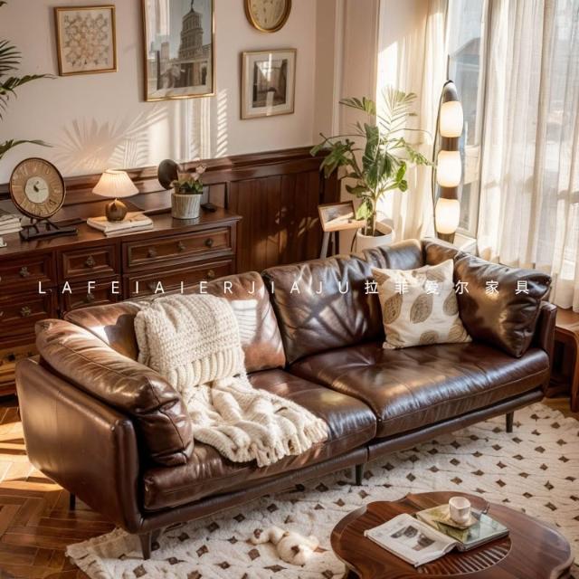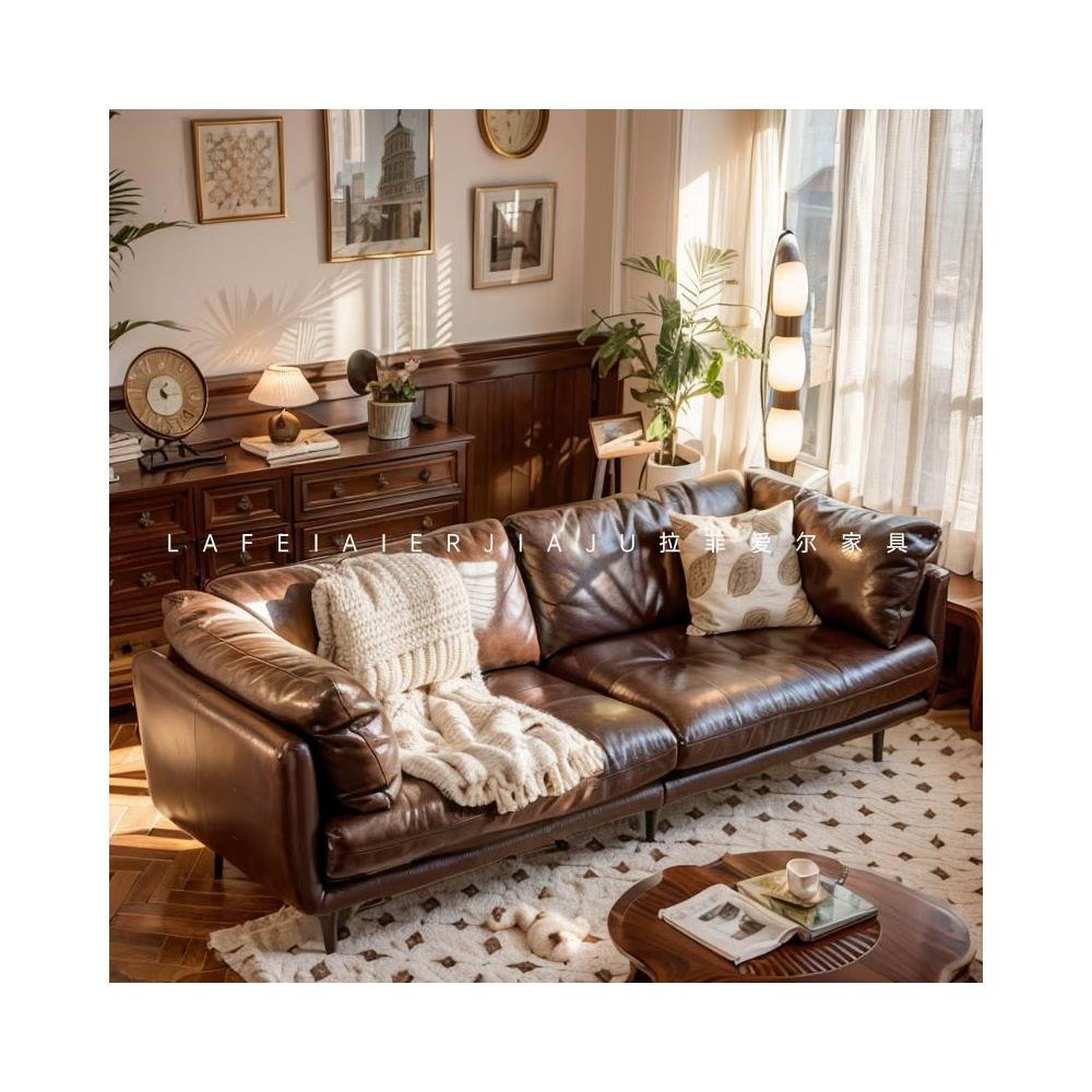 Hug懷抱沙發客廳2025新款中古風羽絨小戶型直排復古油蠟真皮沙發