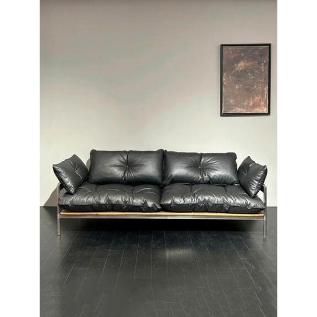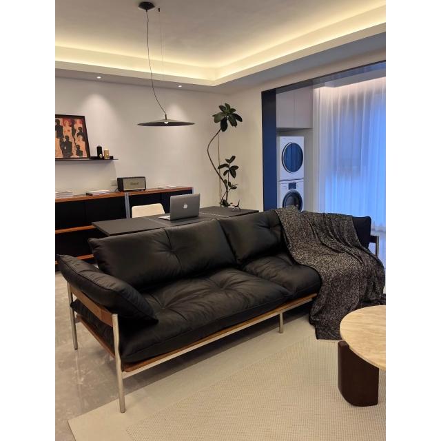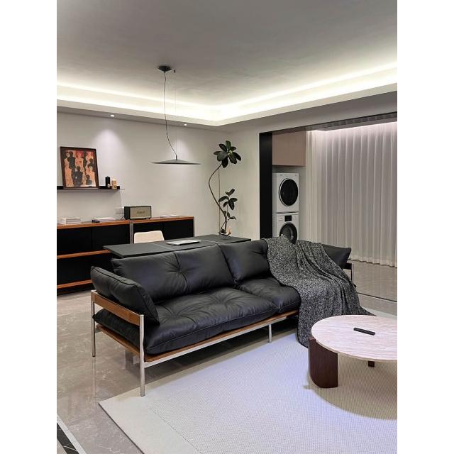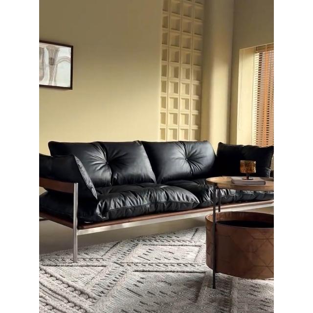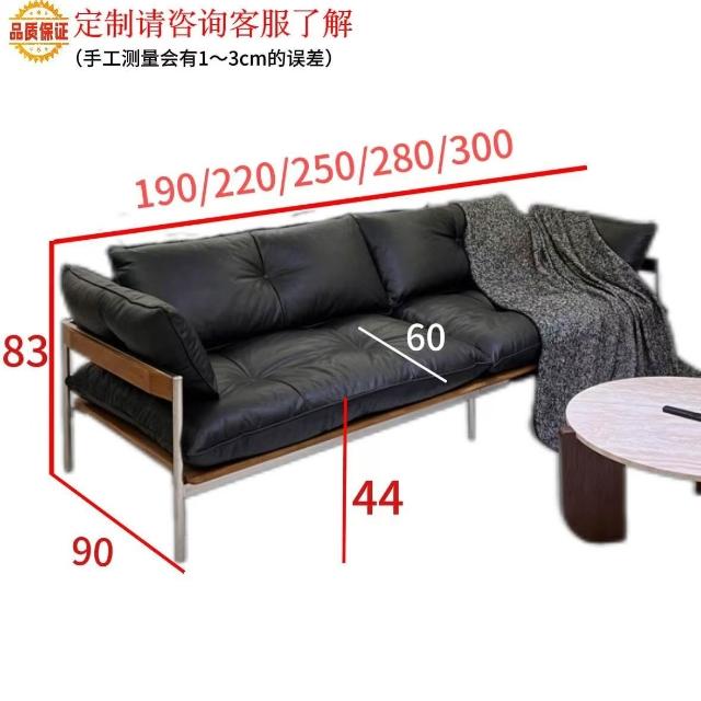 中古復古風黑色真皮沙發小戶型客廳包豪斯意式實木雲朵直排新款