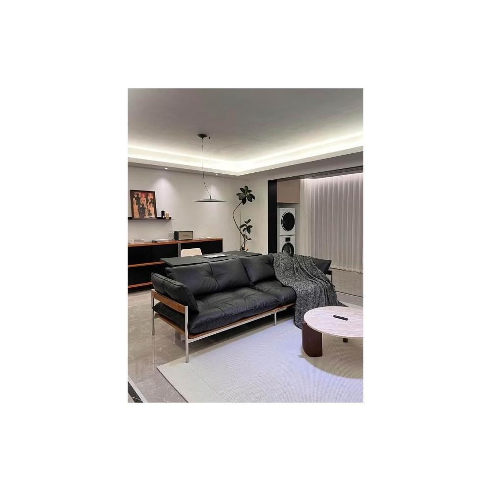 中古復古風黑色真皮沙發小戶型客廳包豪斯意式實木雲朵直排新款