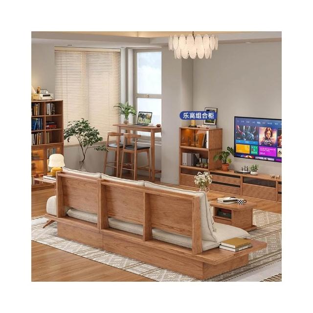 北歐實木櫻桃木 沙發日式小戶型客廳組合 原木榻榻米 落地儲物沙發床