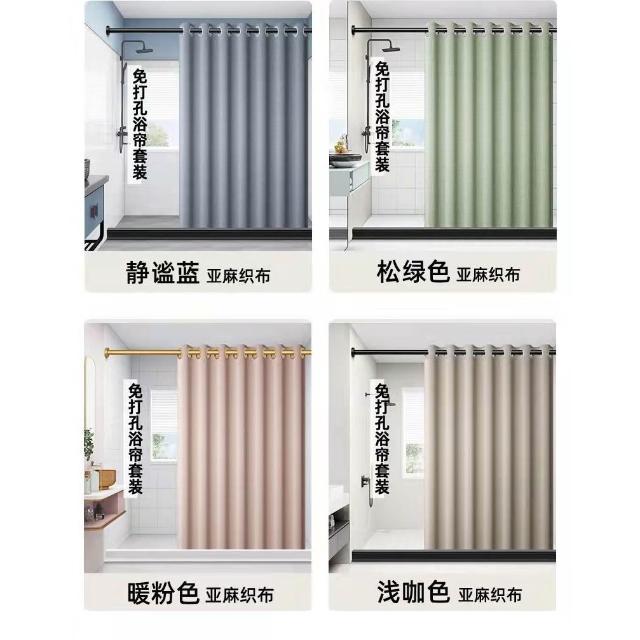 浴簾 防窺簾 窗簾 免打孔家用衛生間廁所浴室防水簾佈防黴磁性擋水條隔斷門簾套裝純色簡約