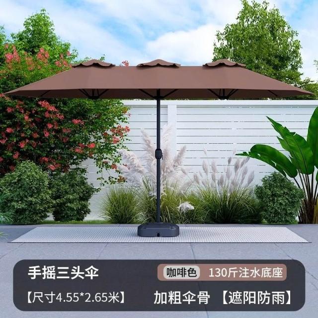 戶外遮陽傘庭院傘三頭傘羅馬傘擺攤室外太陽能帶燈大傘沙灘太陽傘