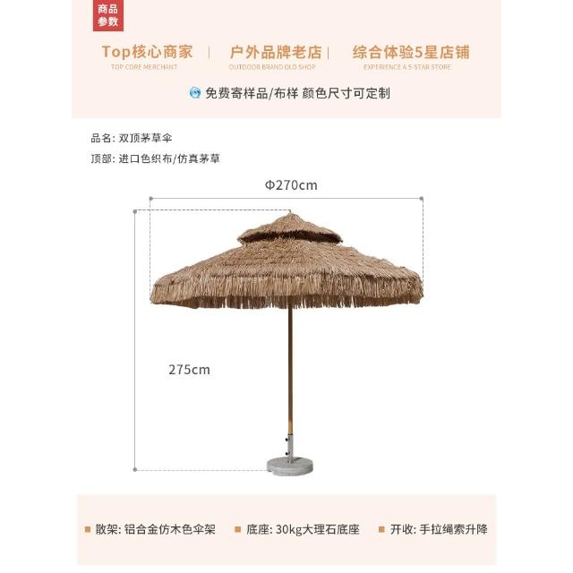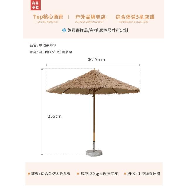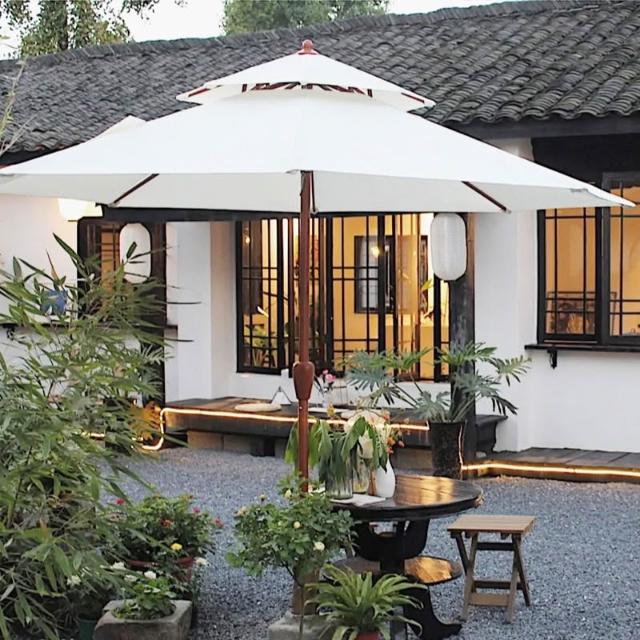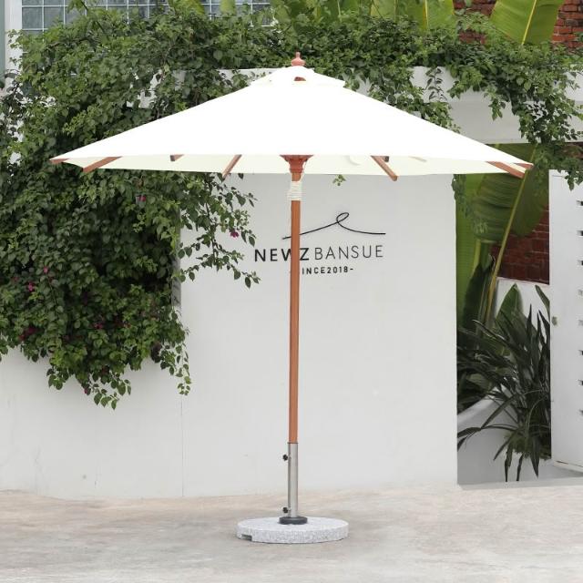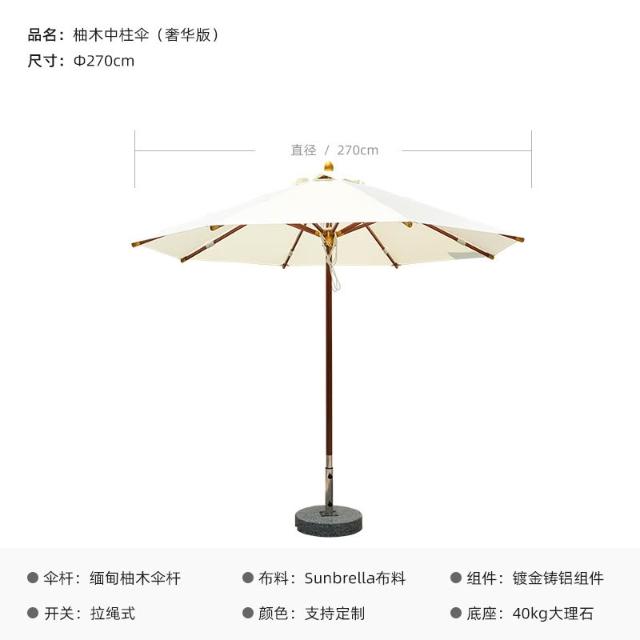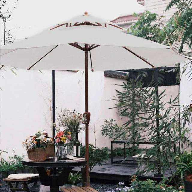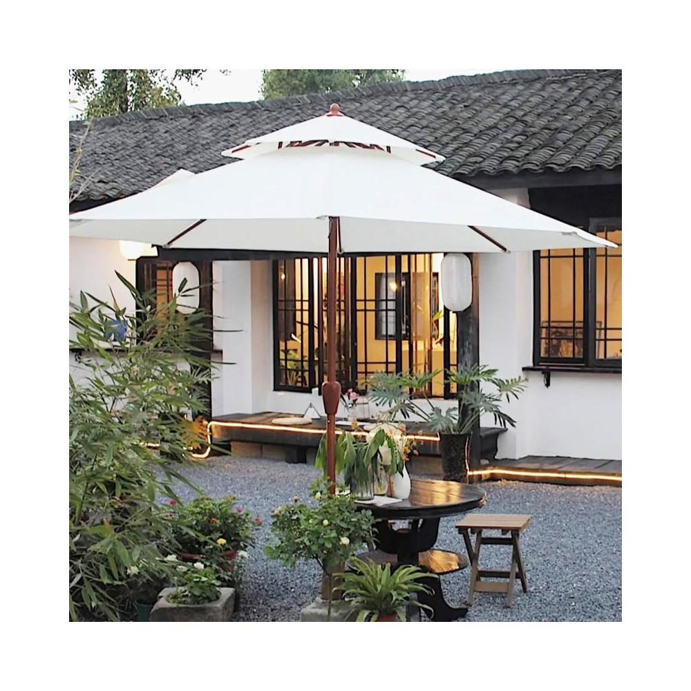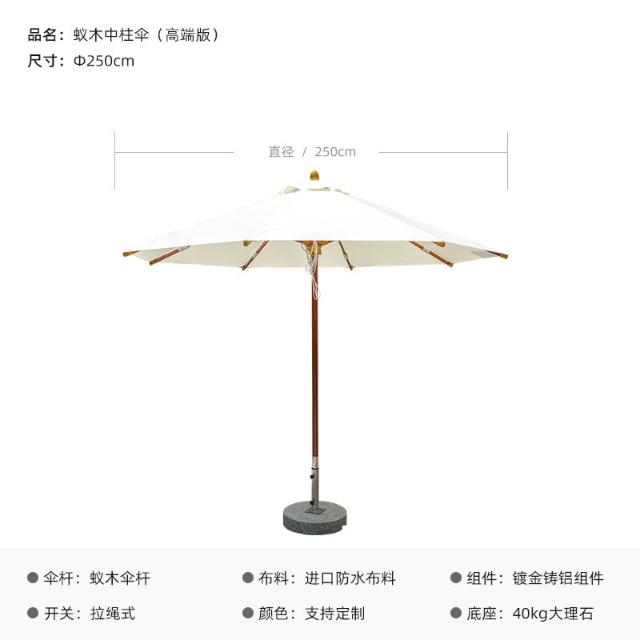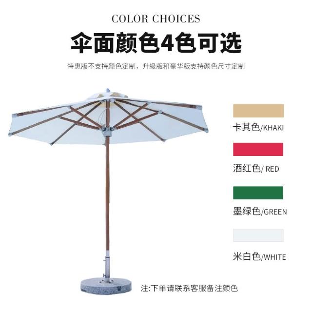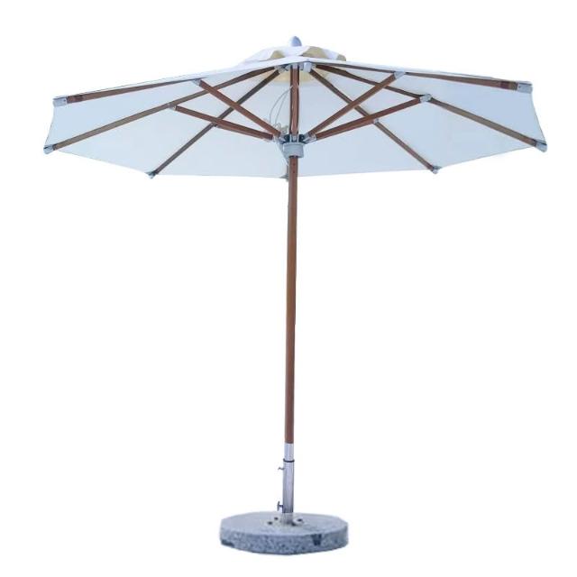 高檔戶外傘遮陽傘圓形實木中柱傘民宿泳池室外防水防曬白色庭院傘