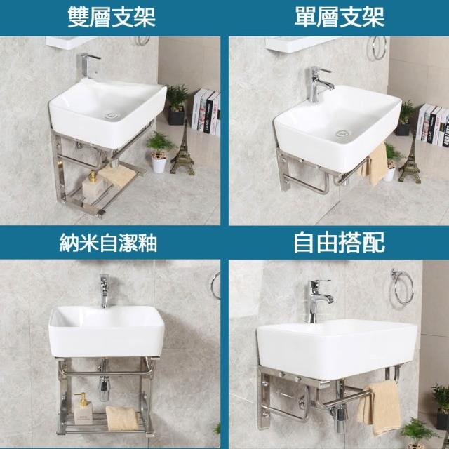 壁掛洗漱臺 掛墻式洗手臺 陶瓷小戶型洗臉盆陽臺迷你支架盆掛盆墻上水池套裝小容量