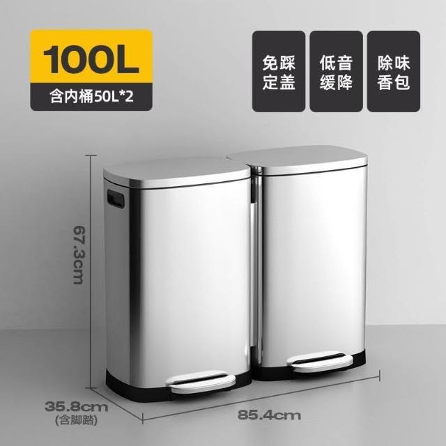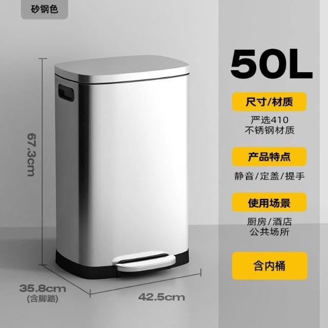 爆款-免運 不锈钢分类垃圾桶商用大容量带盖办公室公共场合酒店脚踏式垃圾箱