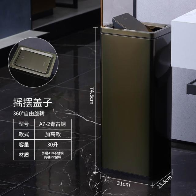 垃圾桶 垃圾箱 家用垃圾桶 公共衛生洗手間擦手紙搖蓋垃圾桶不銹鋼立式方形翻蓋大號商用廁所