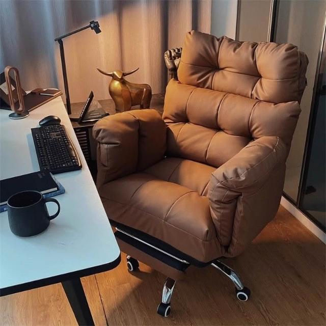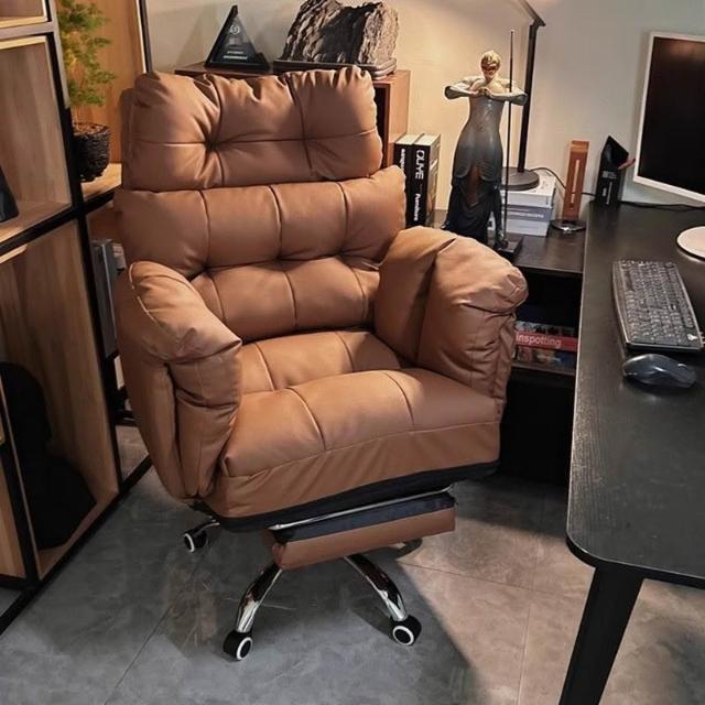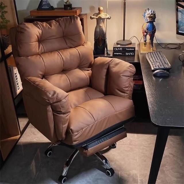 🫧真皮老闆椅咖色辦公商務座椅書房舒服久坐電腦沙髮椅午休可躺懶人