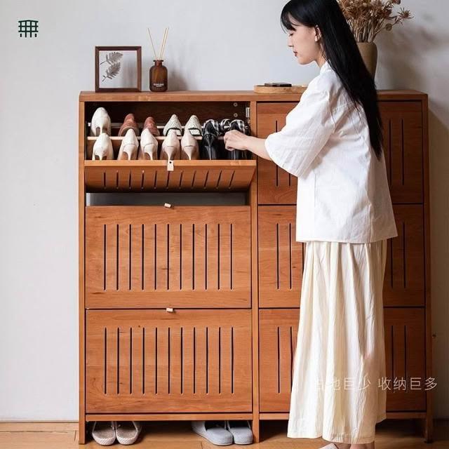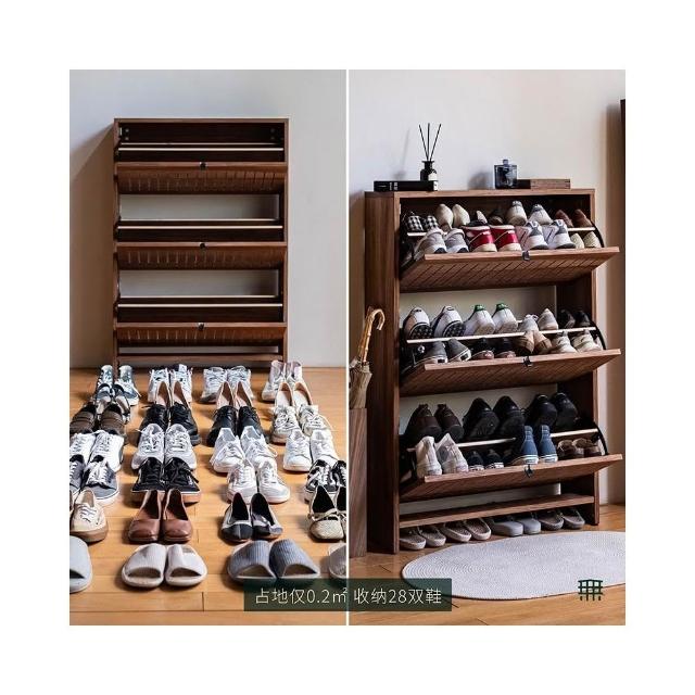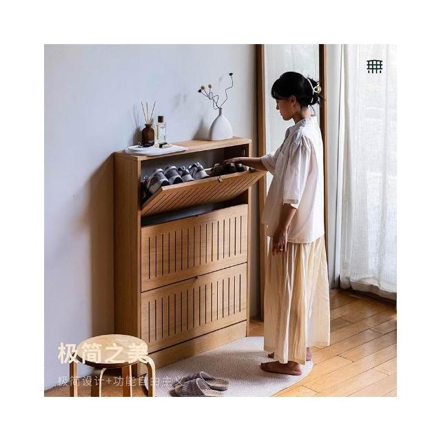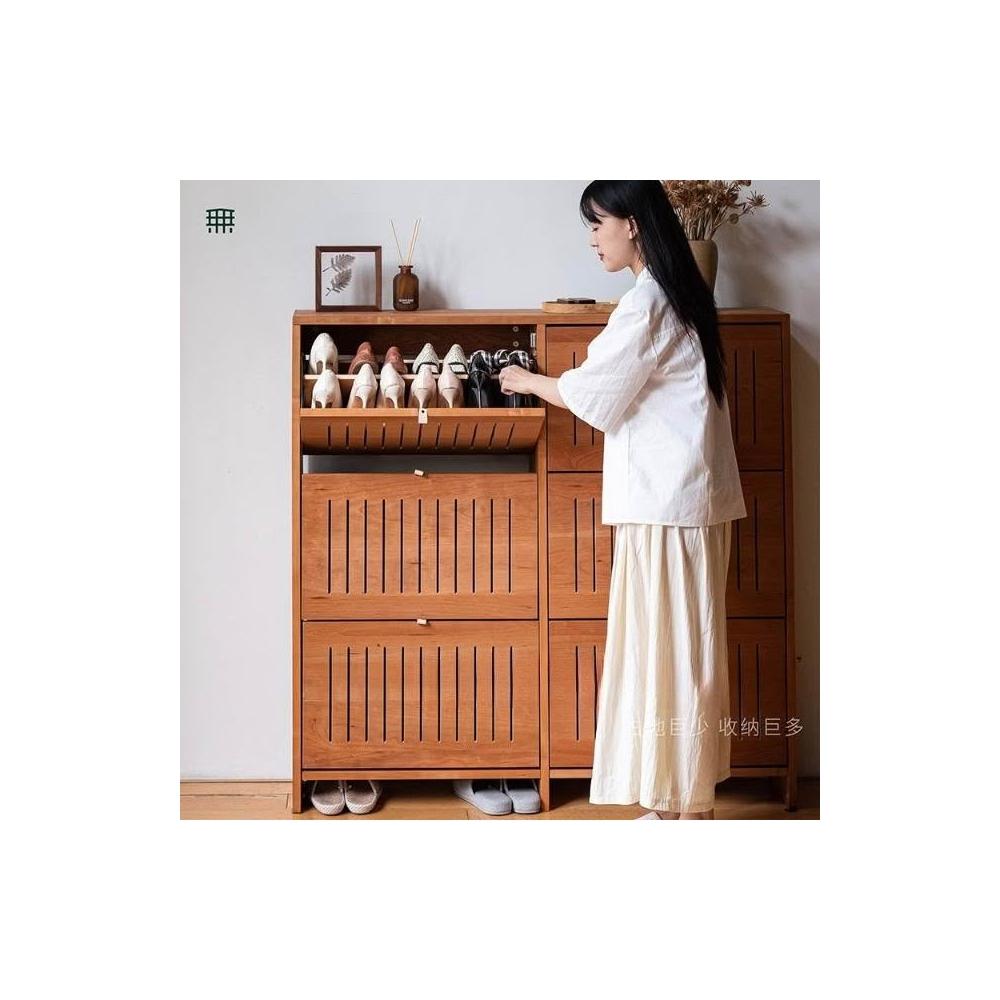 無即所有北歐家用大容量翻鬥鞋櫃玄關櫃一體隔斷日式超薄實木鞋架