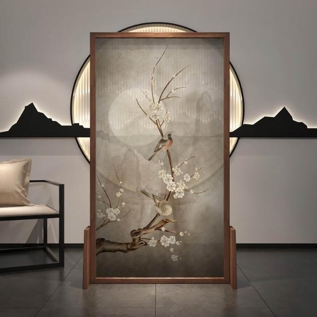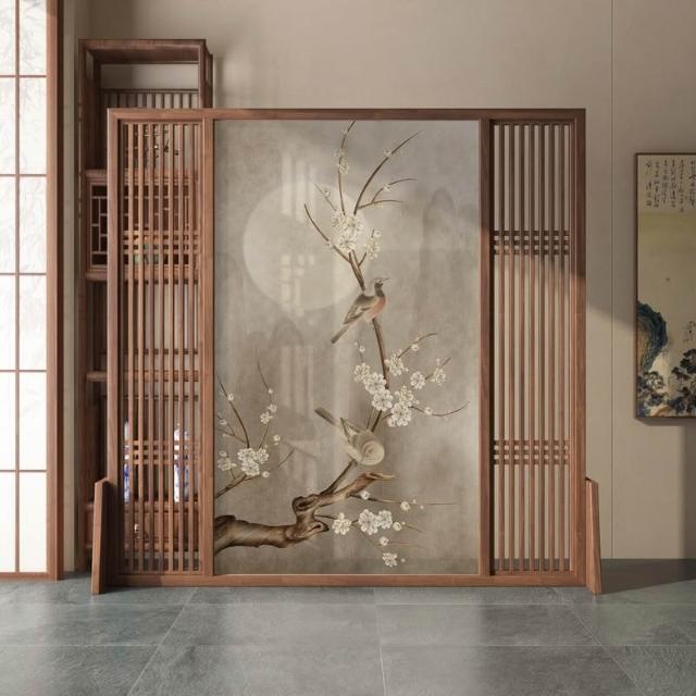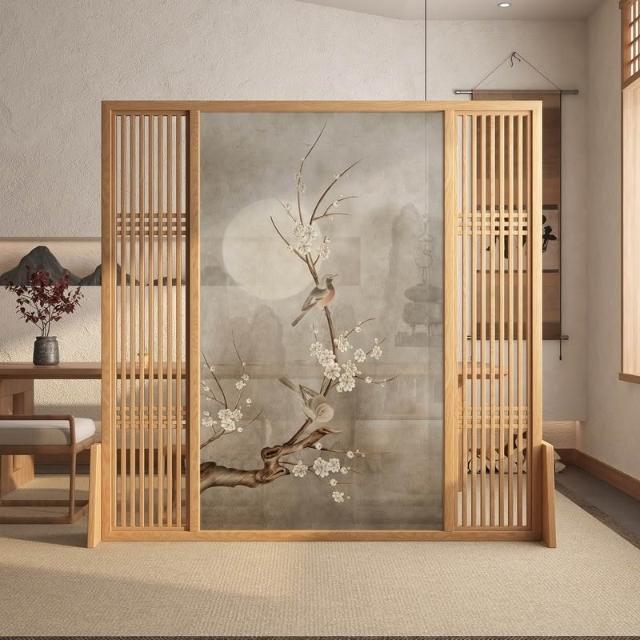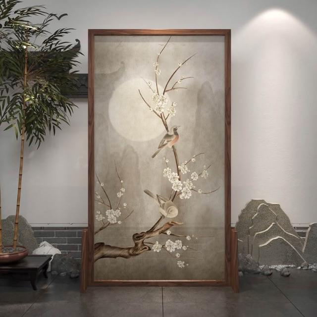中式屏風隔斷客廳古典禪意入戶玄關布藝臥室遮擋家用實木移動座屏