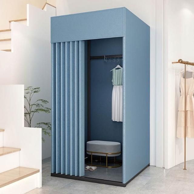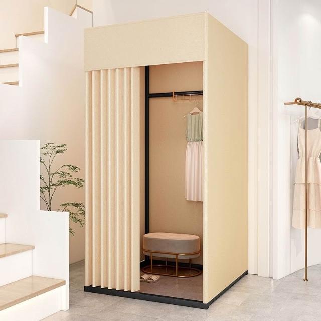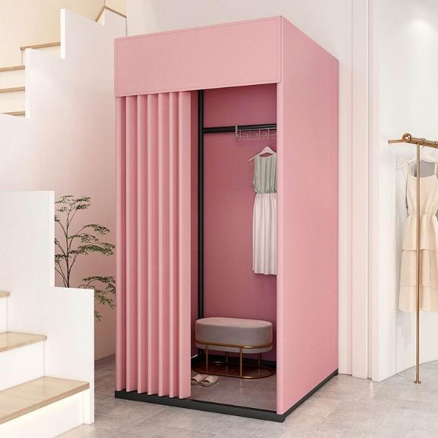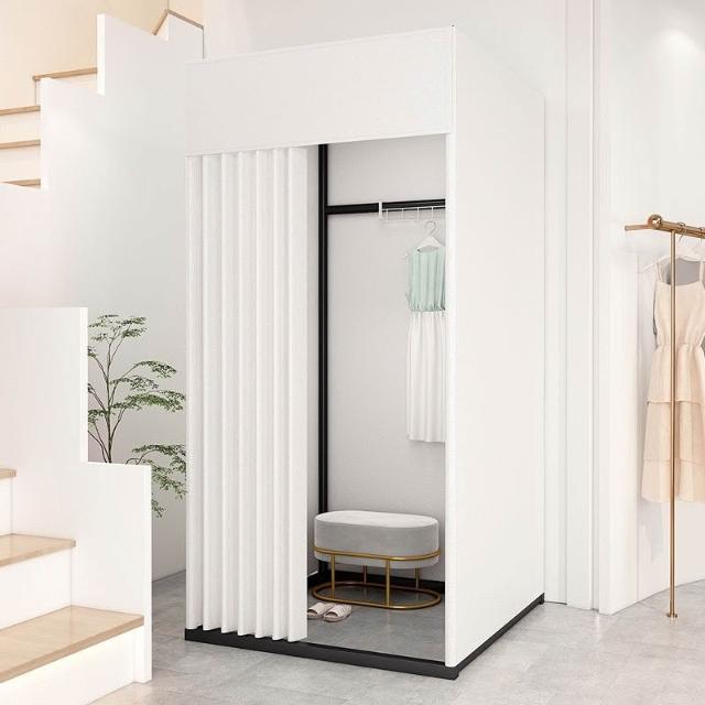 試衣間 換衣間 更衣室 服裝店商場組裝更衣室簡易移動試衣間門簾落地便攜展示架子換衣間