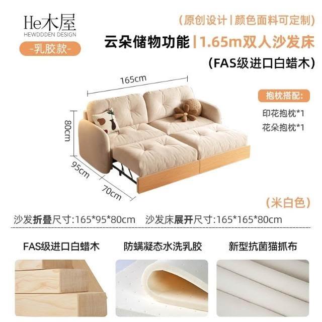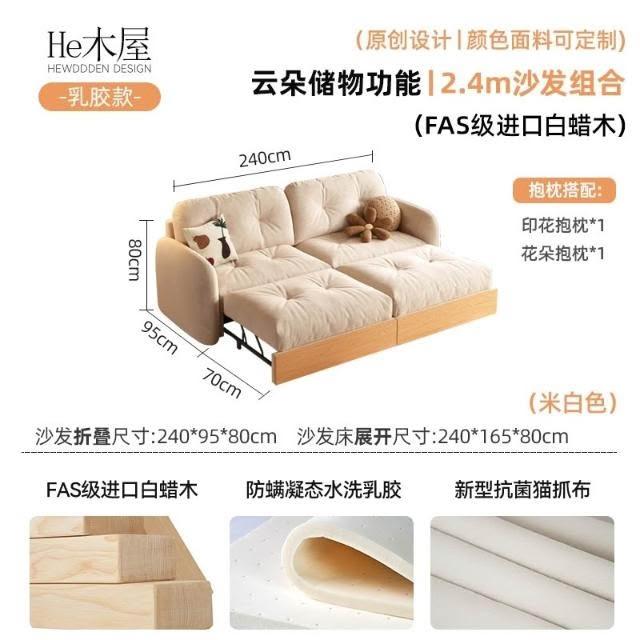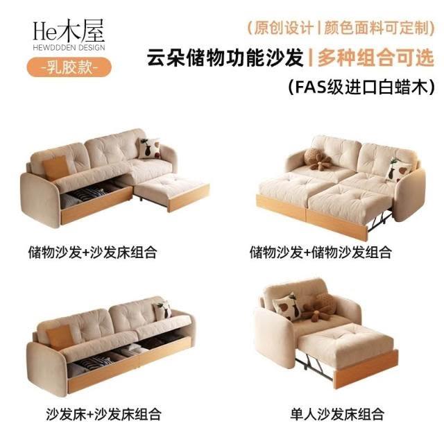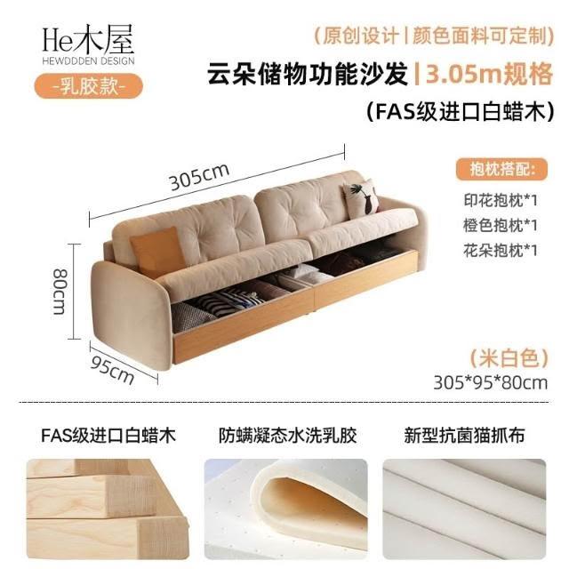 工坊直銷 現貨 免運 日式網紅 可儲物雲朵沙發 小戶型客廳 原木奶油風 布藝北歐實木沙發床
