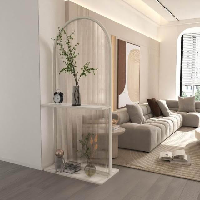✨宅配免運✨ 奶油風進門屏風 沙髮長虹玻璃屏風隔斷 屏風置物架 入戶正對門客廳玄關屏風 可移動屏風