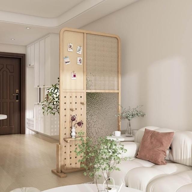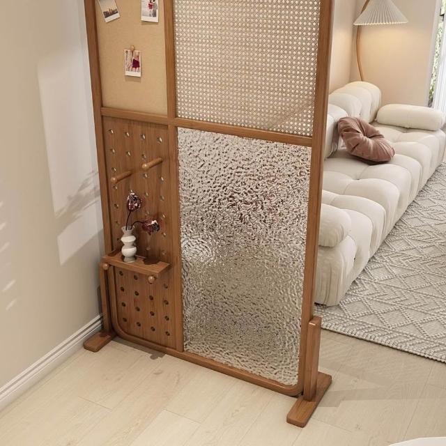 廠家直銷 免運/現貨 日式實木屏風隔斷 水紋玻璃洞洞板藤編櫻桃置物架客廳入戶家用玄關 現代客廳洞洞板屏風