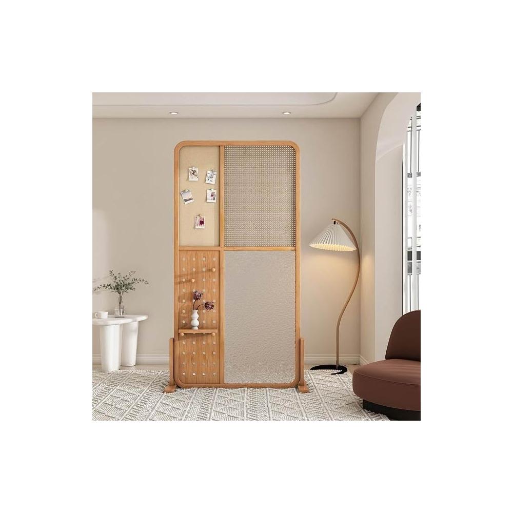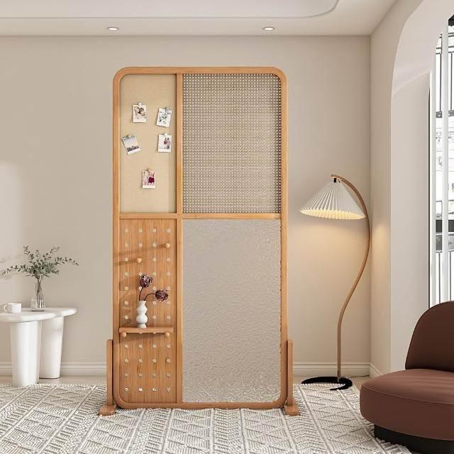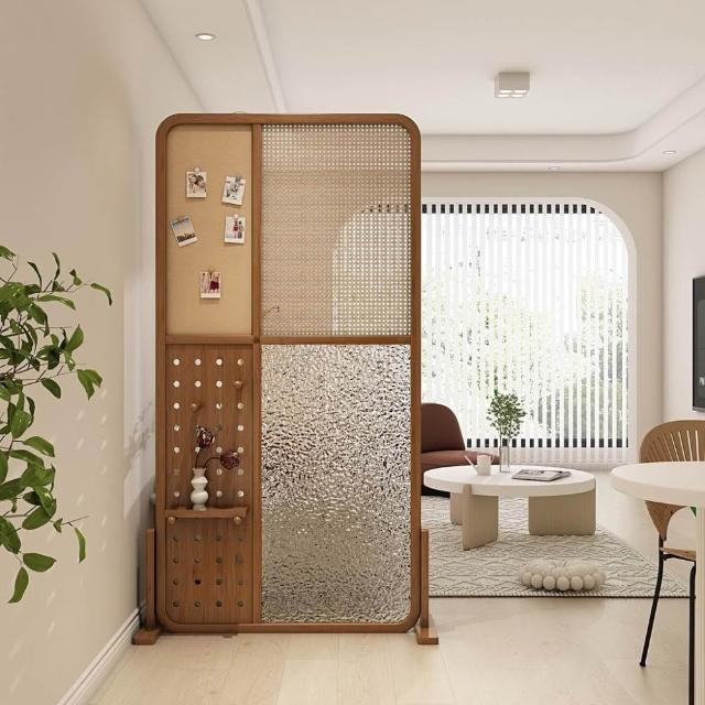 廠家直銷 免運/現貨 日式實木屏風隔斷 水紋玻璃洞洞板藤編櫻桃置物架客廳入戶家用玄關 現代客廳洞洞板屏風
